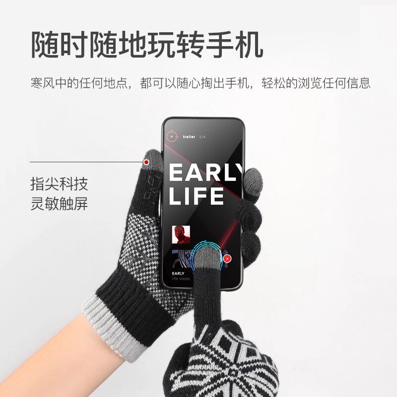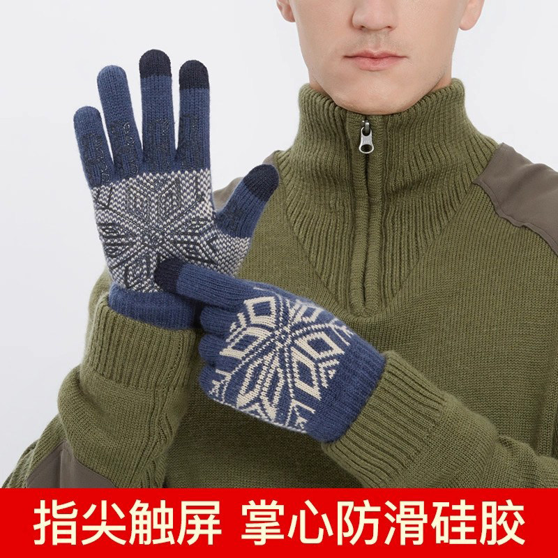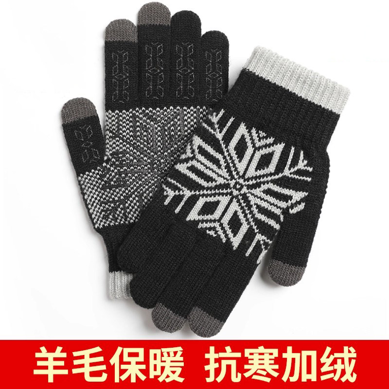 仿羊毛手套男士冬季针织骑车可触屏保暖加厚加绒开车骑行毛线防滑
