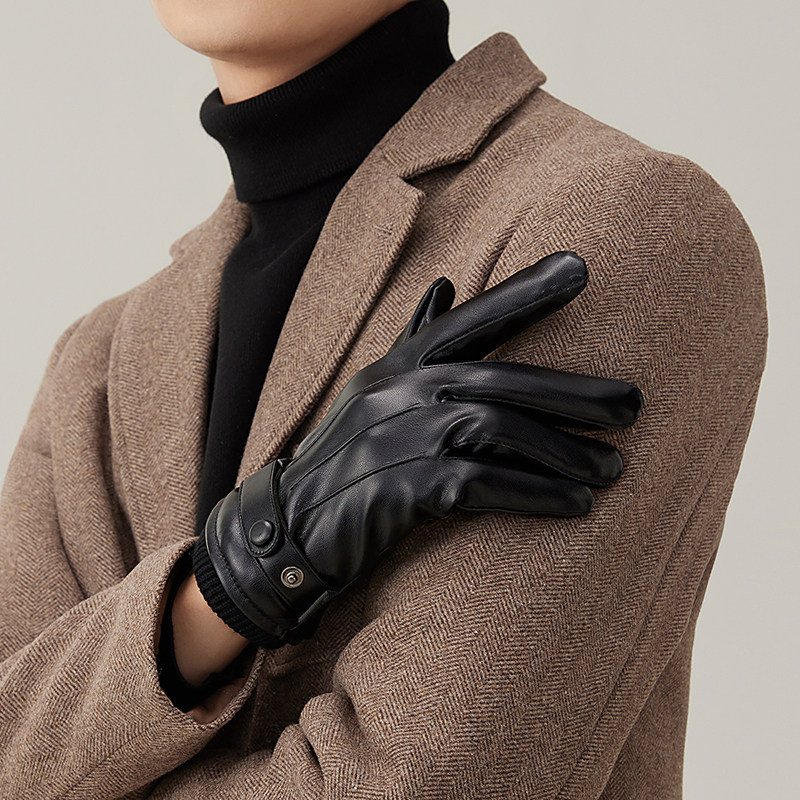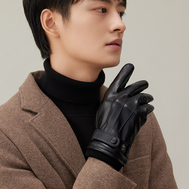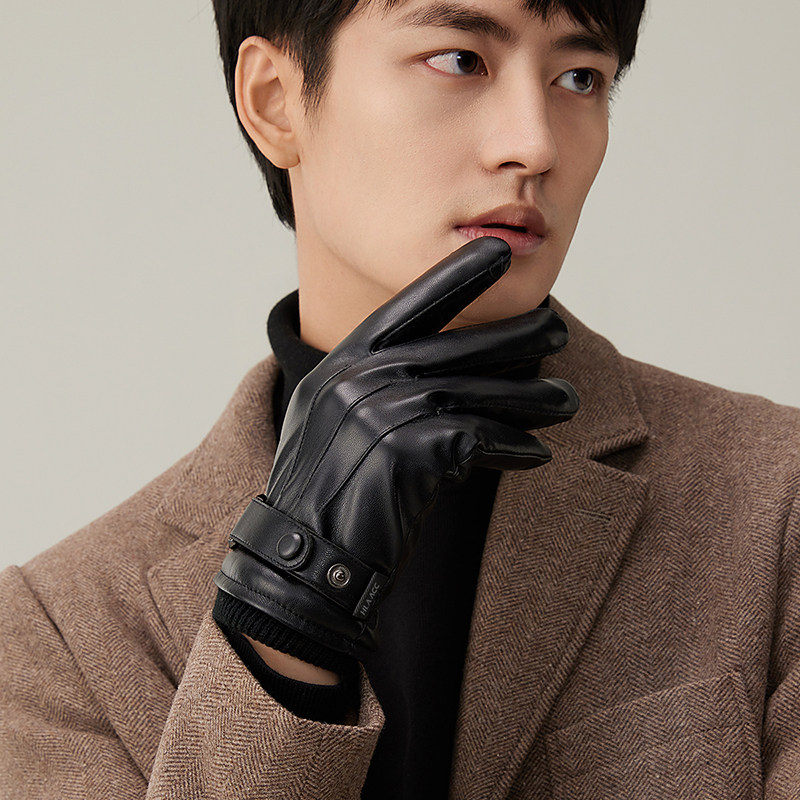 HLA/海澜之家男士骑车手套秋冬天户外加绒防泼水防寒触屏新款手套