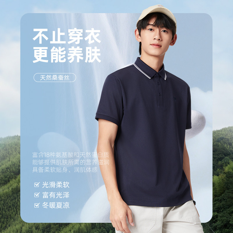【桑蚕丝】骆驼短袖polo衫男2025商务t恤透气翻领时尚体恤男