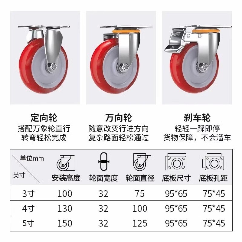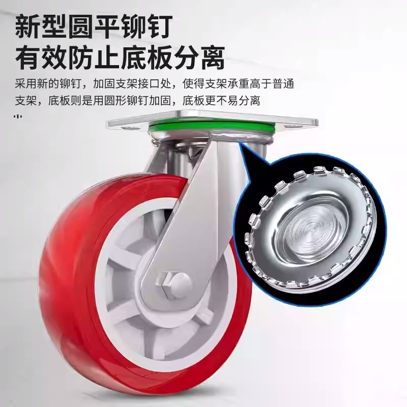 万向轮轮子重型聚氨酯静音脚轮6寸推车板车轮子拖车滑轮承重轱辘