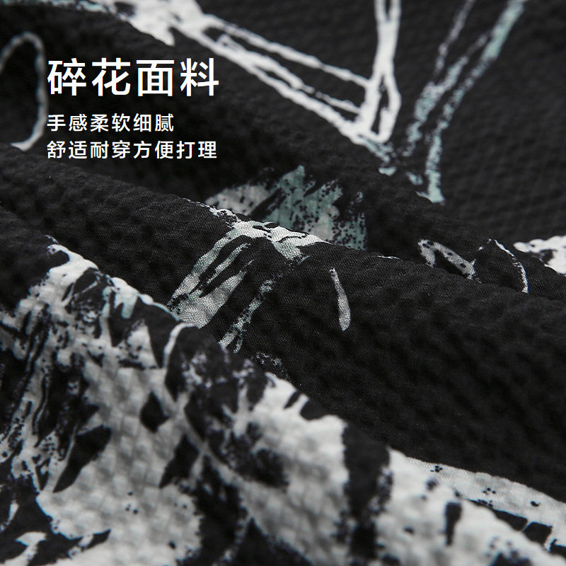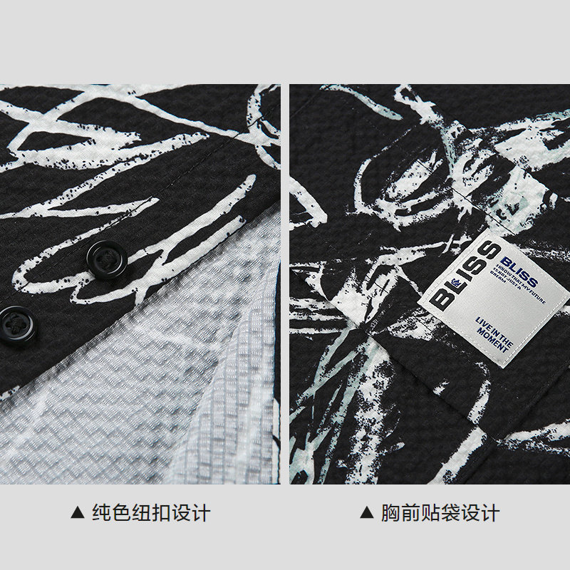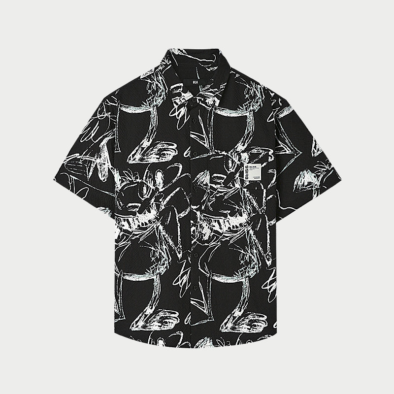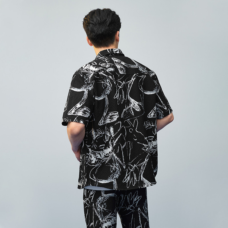 HLA/海澜之家潮流碎花夏短袖休闲衬衫时尚宽松外套上衣男