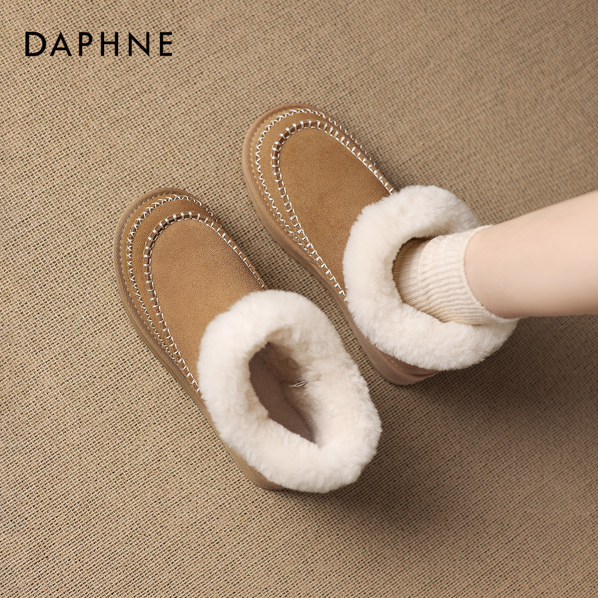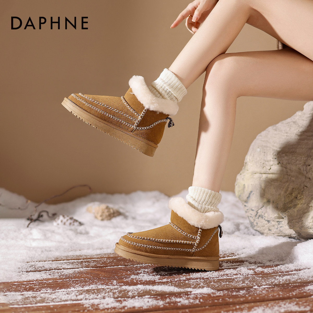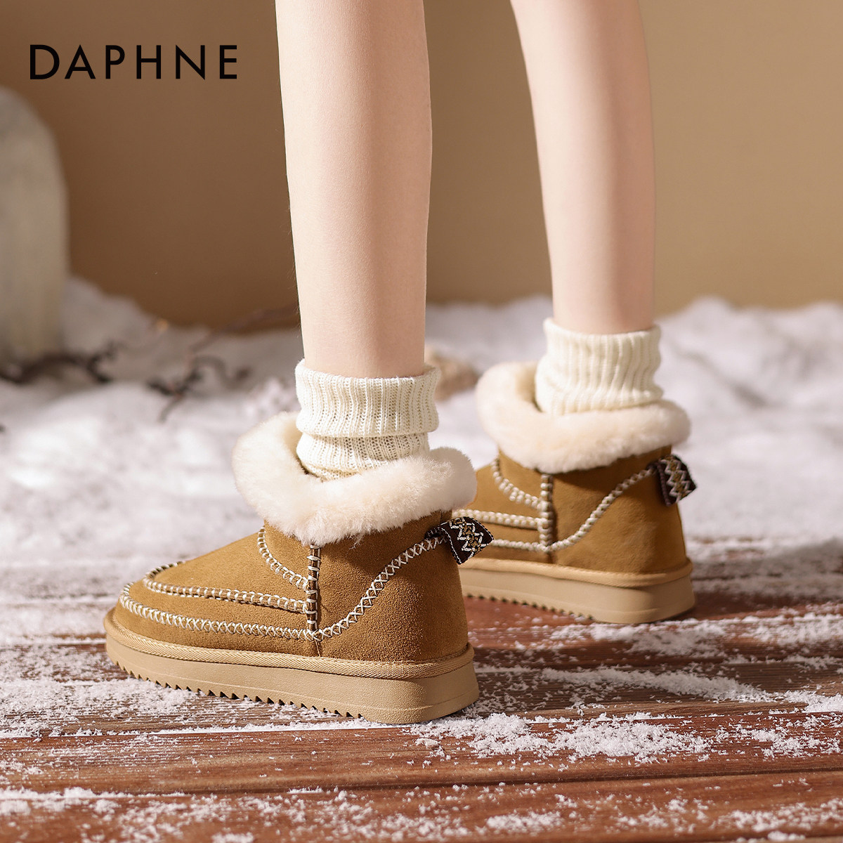 达芙妮外穿雪地靴女款2026新款冬季民族风保暖加厚棉鞋加绒短筒靴