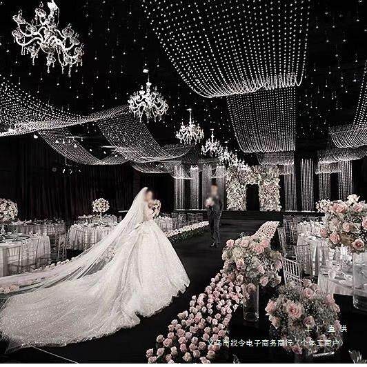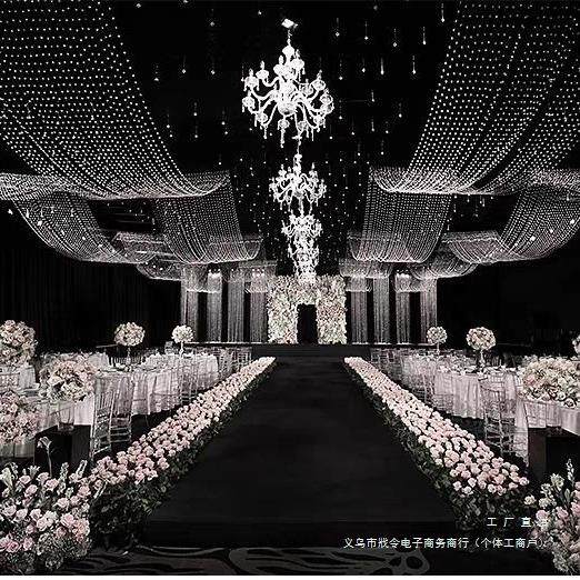 新款婚庆道具水晶波浪珠串珠帘吊顶装饰珠链婚礼堂菠萝珠帘子成品