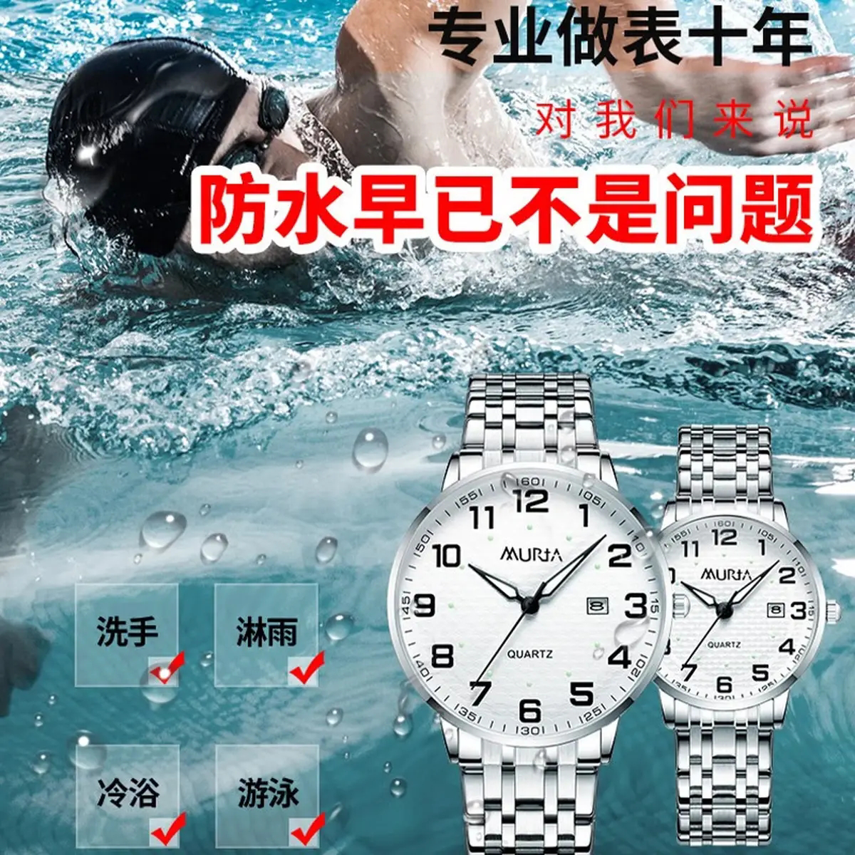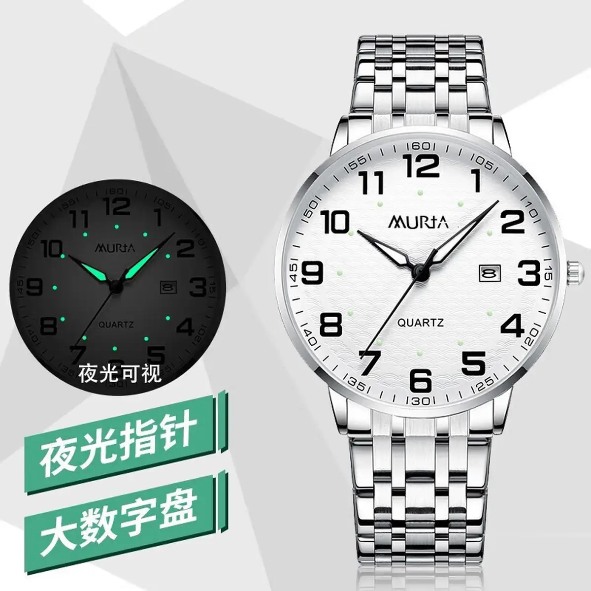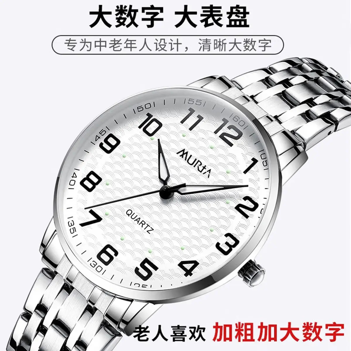 村田稻夫老人手表夜光防水石英表送父亲母亲节礼物生日礼物大表盘