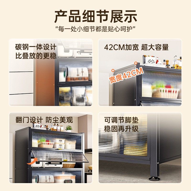 厨房置物架落地多层防尘收纳柜子家用多功能碗柜餐边柜橱柜储物柜