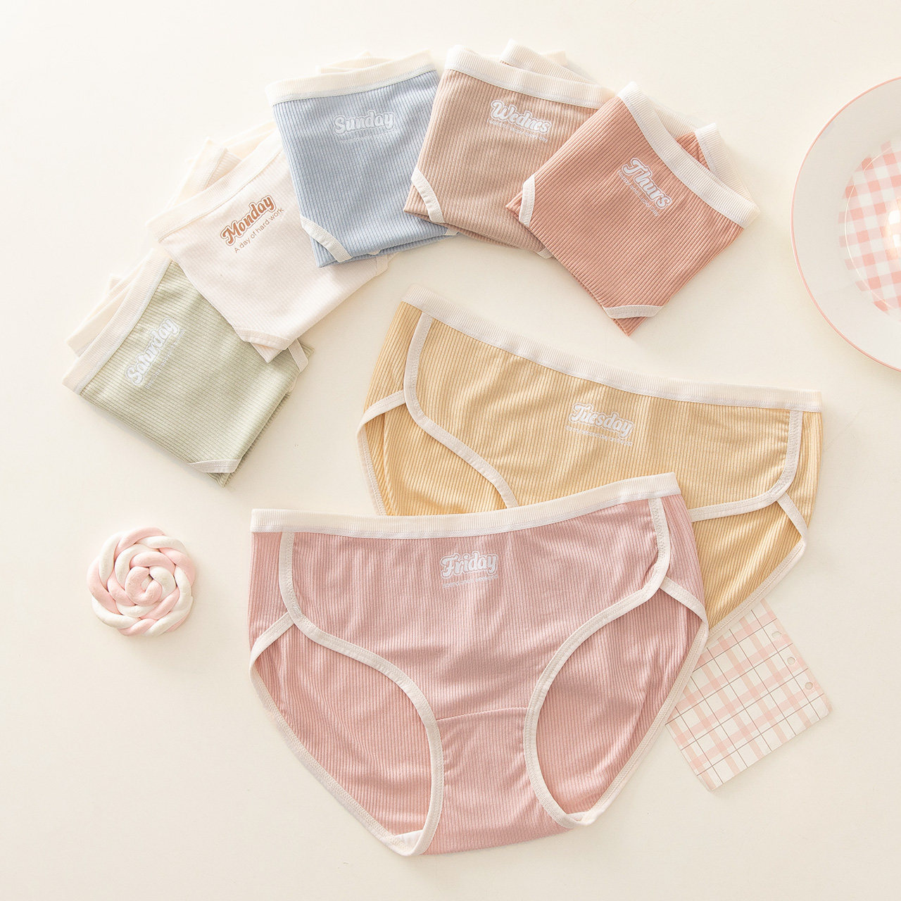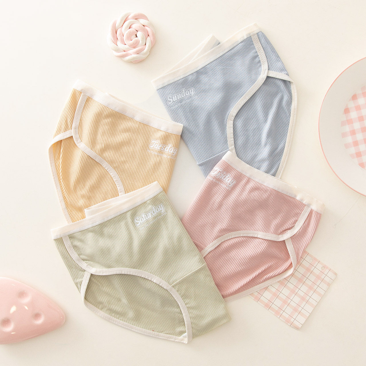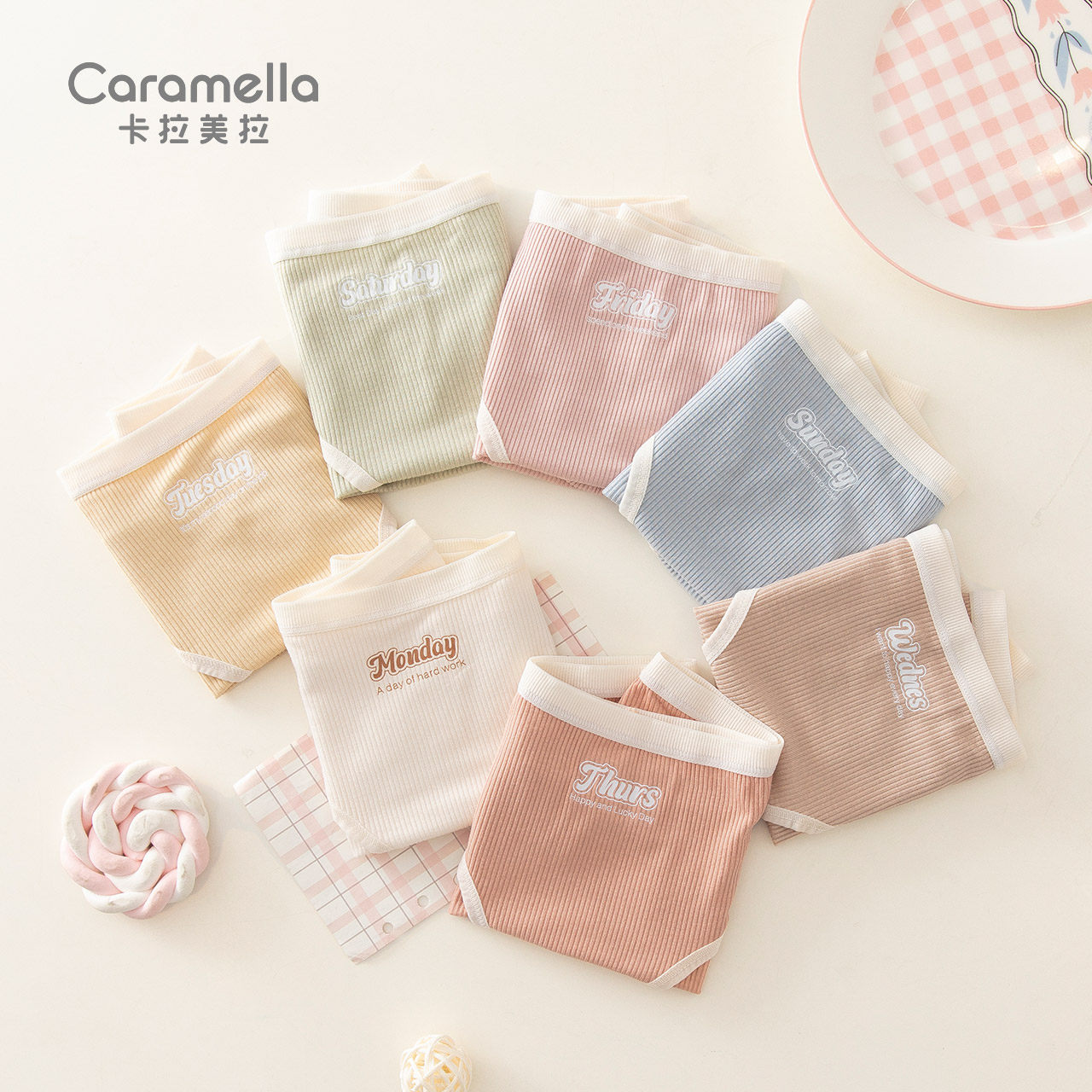 caramella女生星期内裤女纯棉裆透气舒适少女短裤简约马卡龙色系