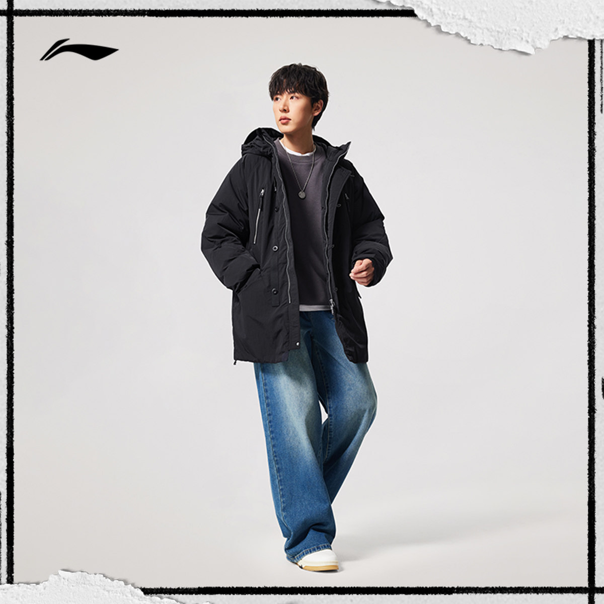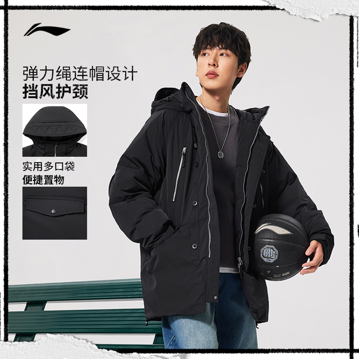 李宁火锅羽绒服丨男冬季鸭绒加厚上衣防寒保暖衣服长款运动外套男