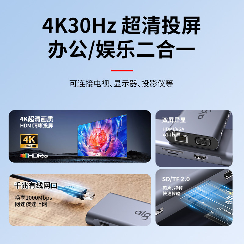 11口全功能拓展,铝合金扇热快,高清拓展