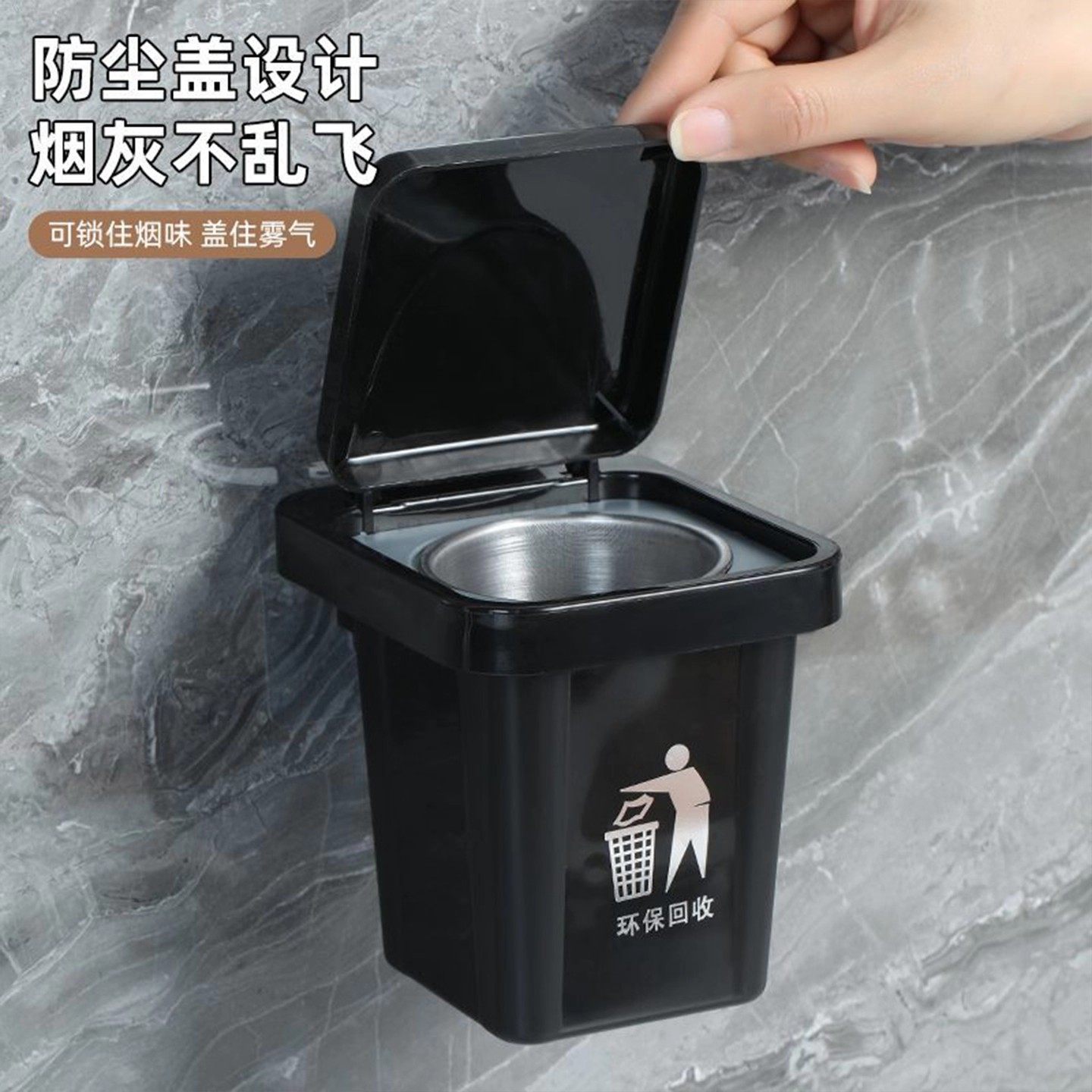 烟灰缸防灰飞家用客厅卫生间搞怪创意免打孔壁挂封闭式带盖垃圾桶