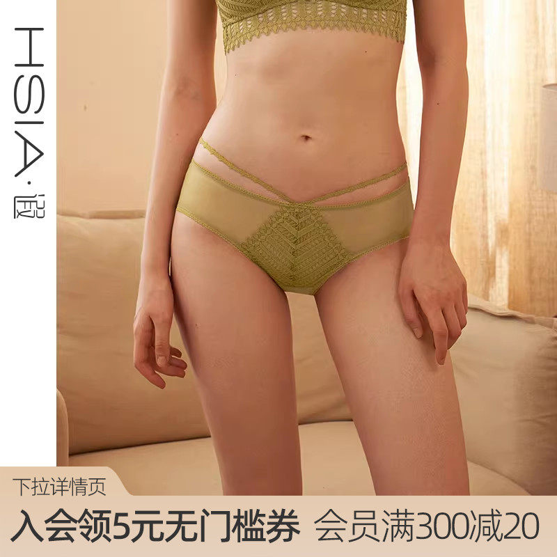 HSIA遐 中腰平角裤仿T裤魅力几何蕾丝轻薄透气纯棉裆底性感内裤女