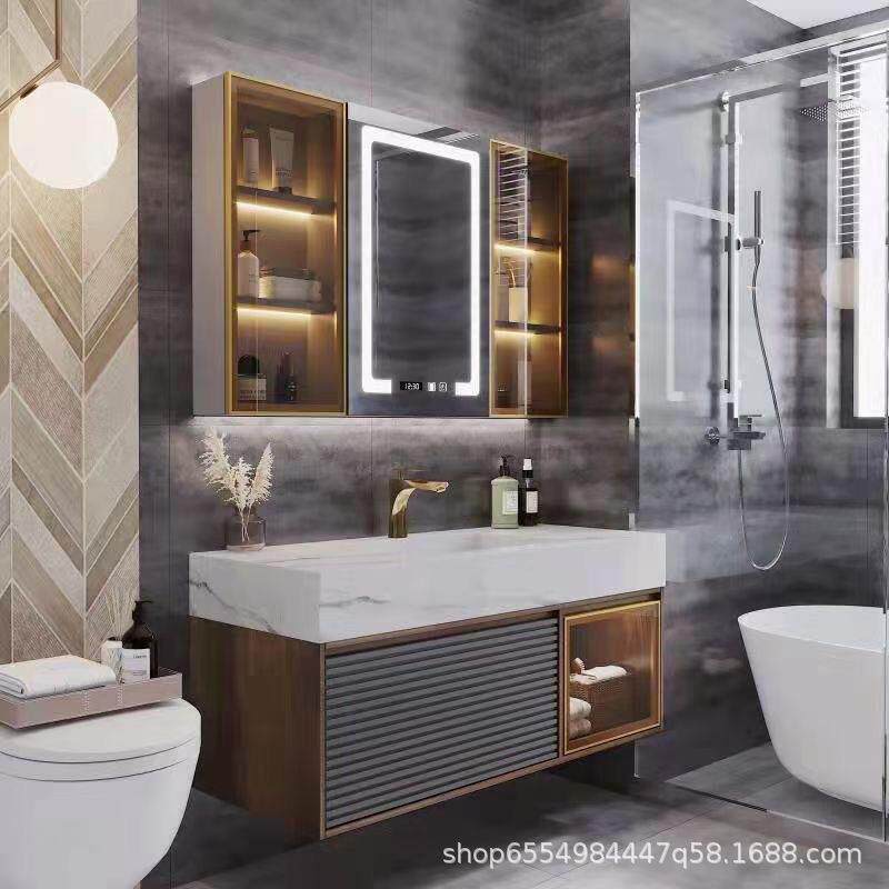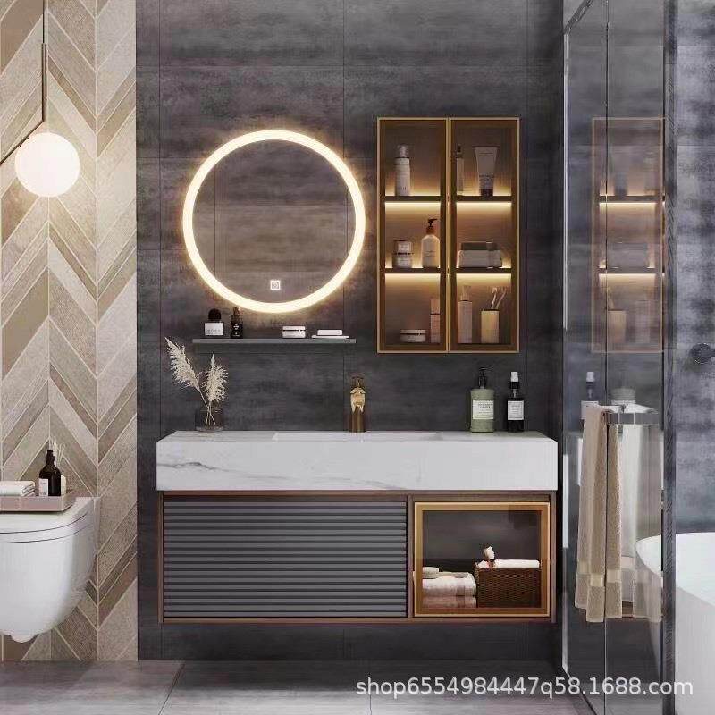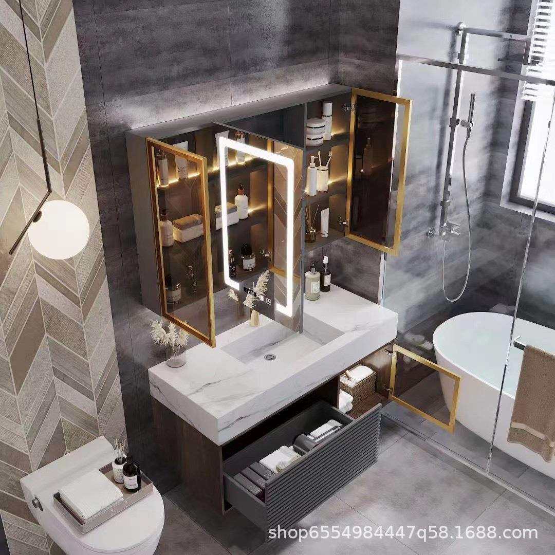 轻奢岩石一体浴室柜组合智能现代简约洗手池洗脸镜卫生间洗漱台盆