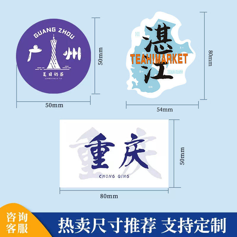 奶茶杯贴纸定制地名异形logo标签一次性杯子防水不干胶贴画咖啡杯贴打印封口贴饮品创意字母品牌商标图案设计