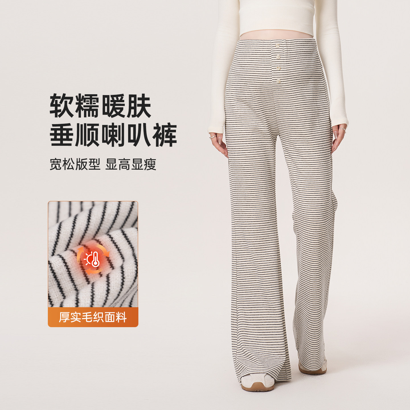 孕妇裤子2026冬季新款弹力松紧加厚条纹喇叭裤孕妇装春秋款长裤女