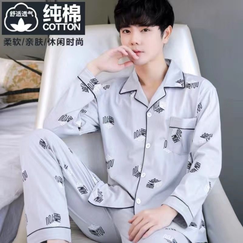 纯棉睡衣男春秋季长袖青少年男士薄款大码宽松夏季家居服套装帅气
