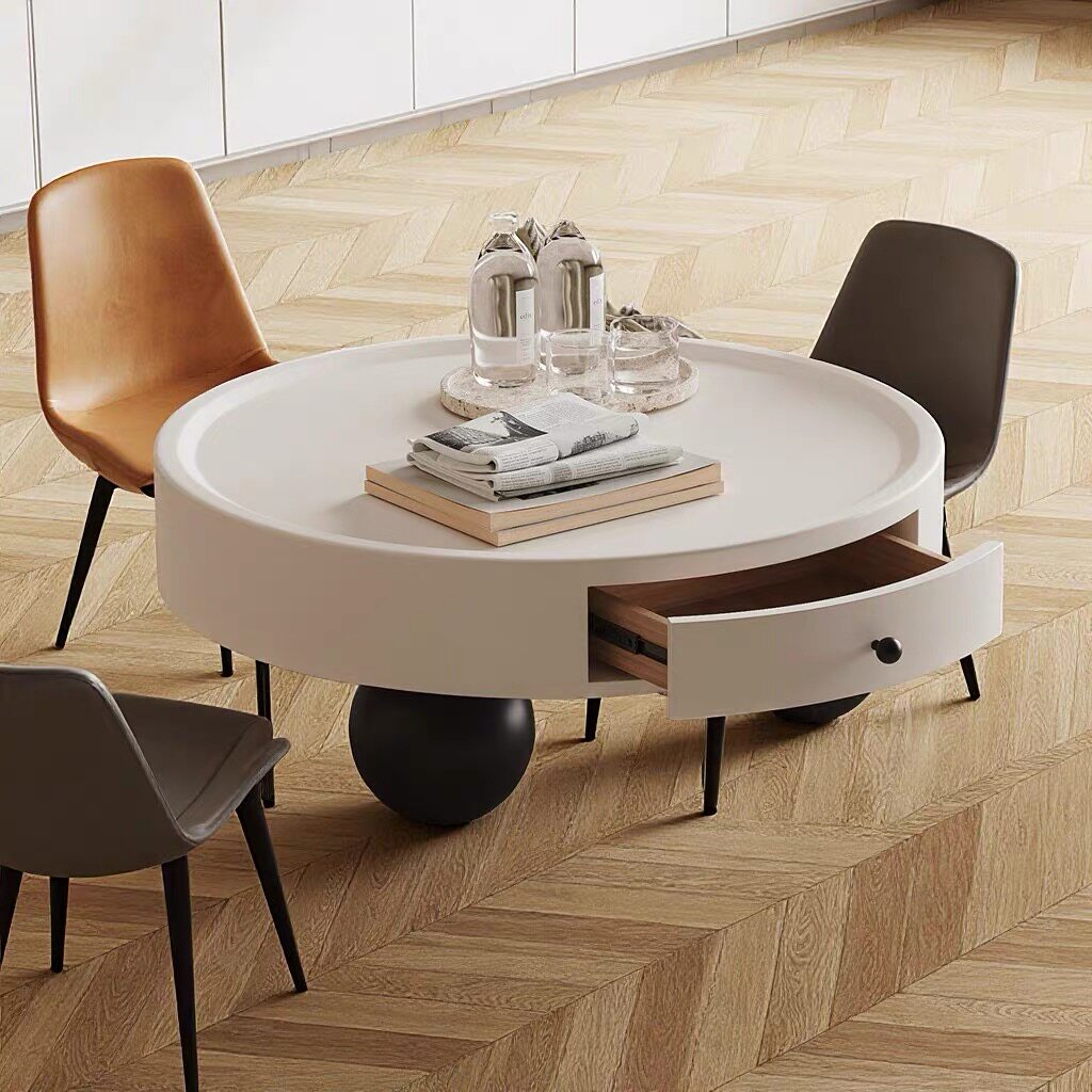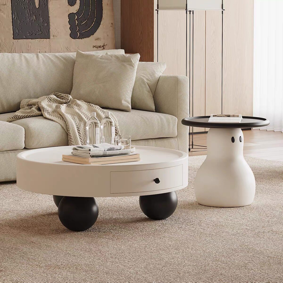 奶油风茶几组合客厅家用设计师设计圆形烤漆意式极简边几轻奢玻璃
