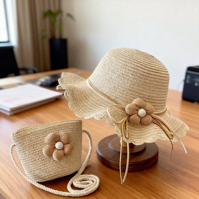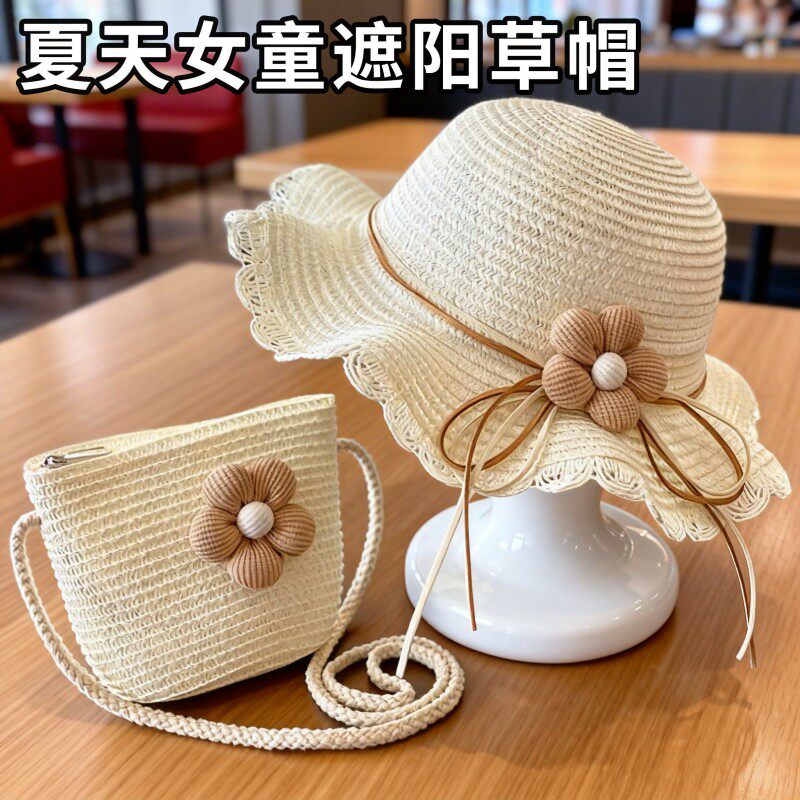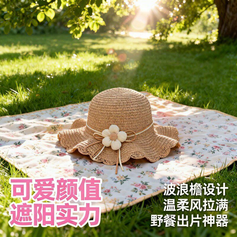 夏天女童遮阳草帽小女孩夏款公主沙滩防晒大檐帽子女宝渔夫帽夏季