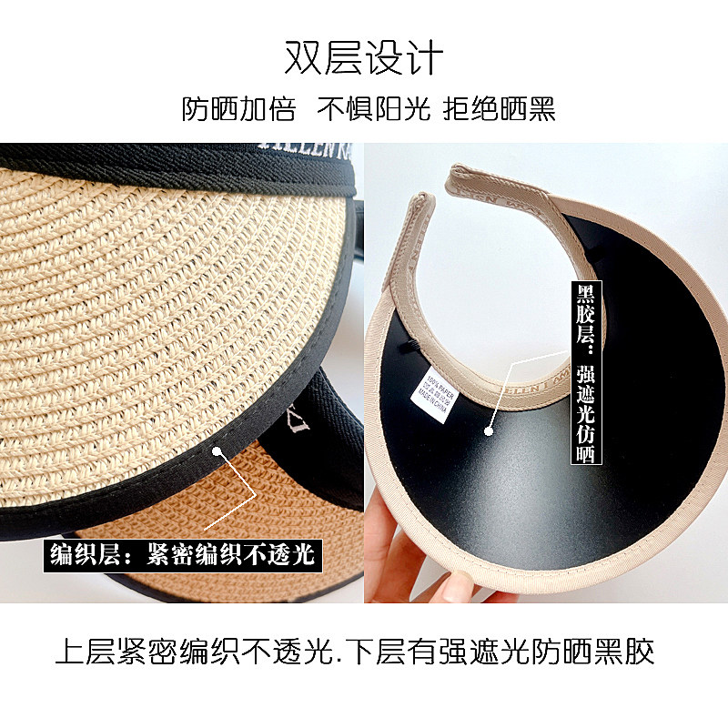 夏季UPF50+宝宝防晒帽遮阳防紫外线儿童空顶帽大帽檐女孩黑胶薄款