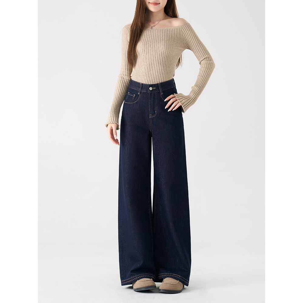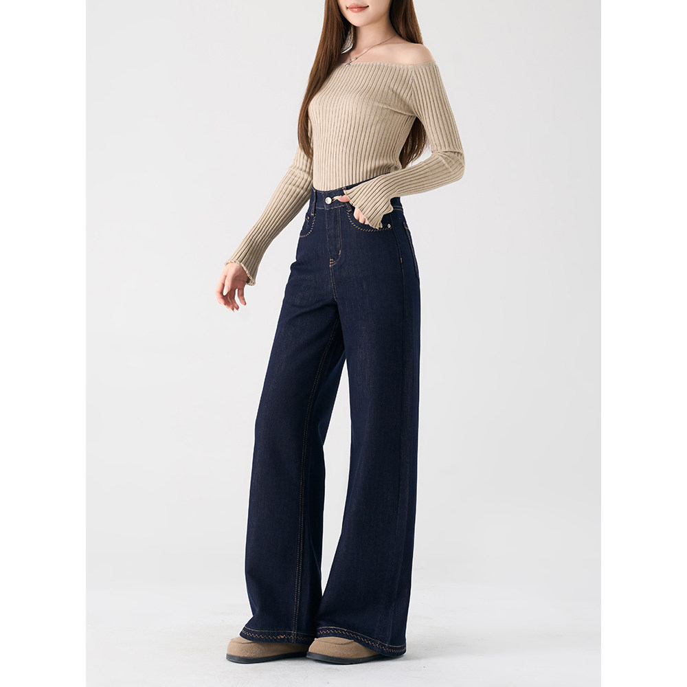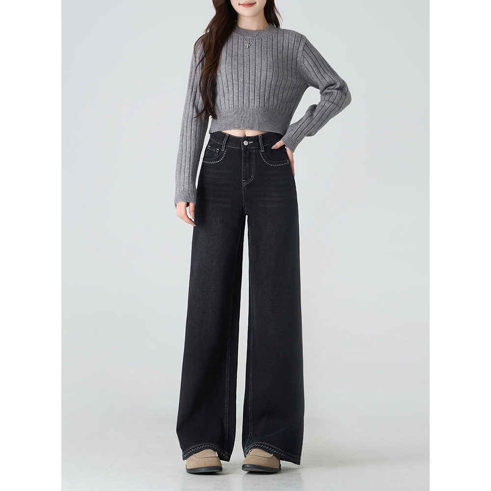 王家有鱼秋冬新款加绒阔腿裤2025百搭修身显瘦宽松直筒牛仔裤子女