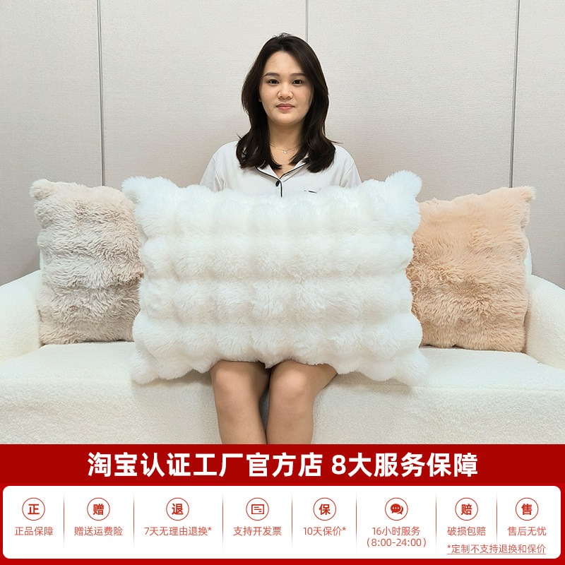 双面仿兔毛绒抱枕轻奢靠枕大靠背垫客厅沙发枕头枕套不含芯高级感