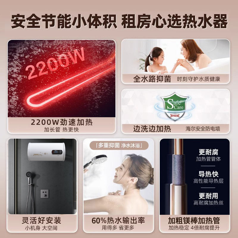 宫廷好太太家用电热水器卫生间速热储水式扁桶小型出租房淋浴洗澡