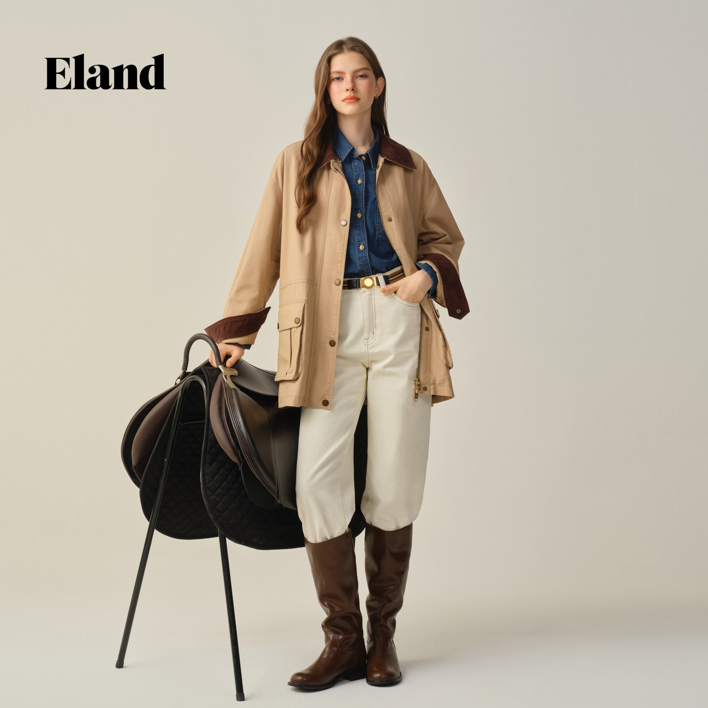 【100%棉】Eland衣恋牛仔裤女时尚直筒裤宽松长裤子2025冬季新款