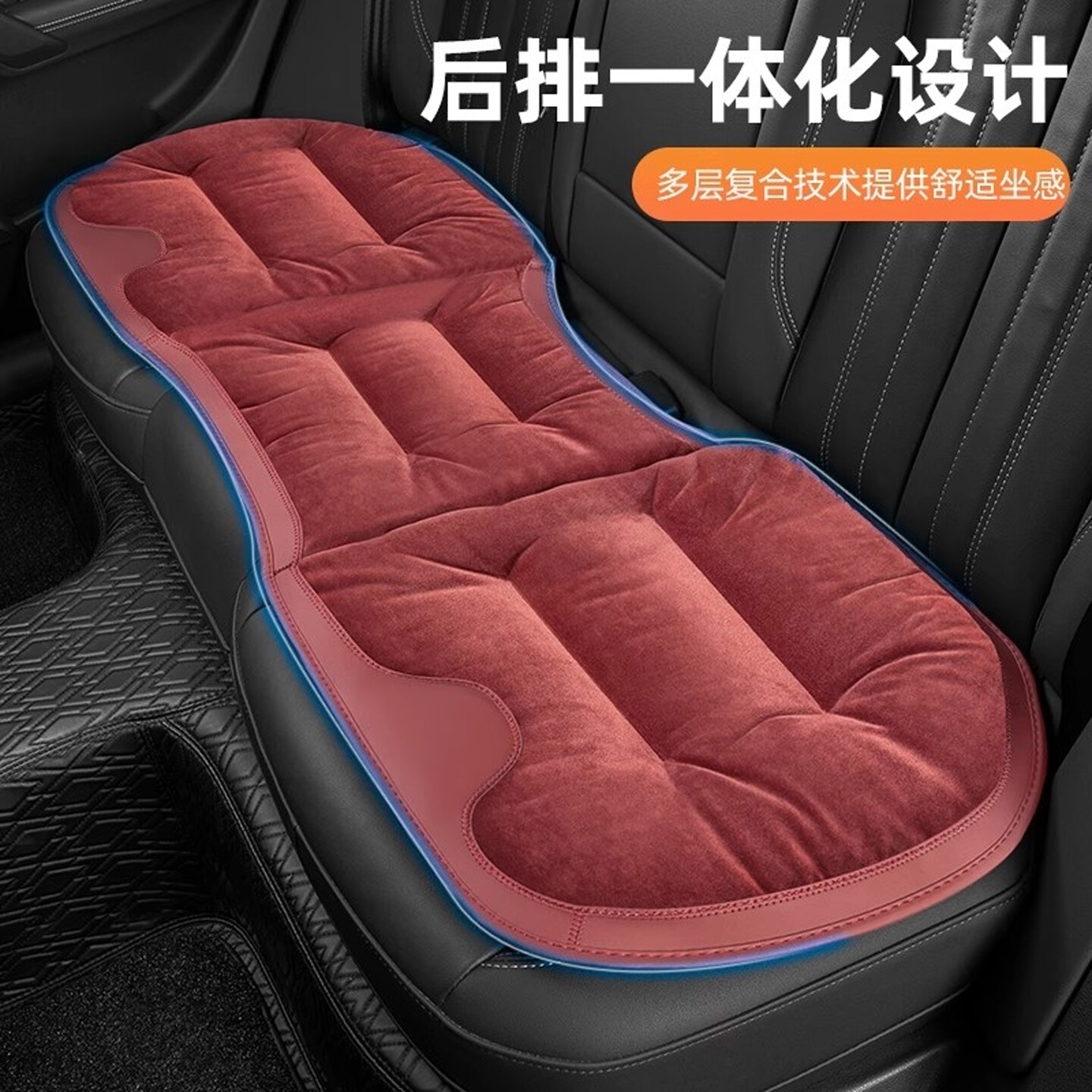 新款科技布四季通用汽车坐垫无靠背屁股垫方垫三件套后排三人长座
