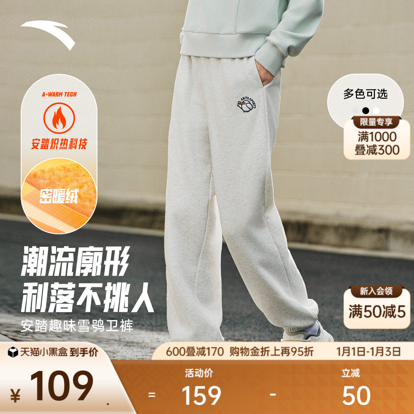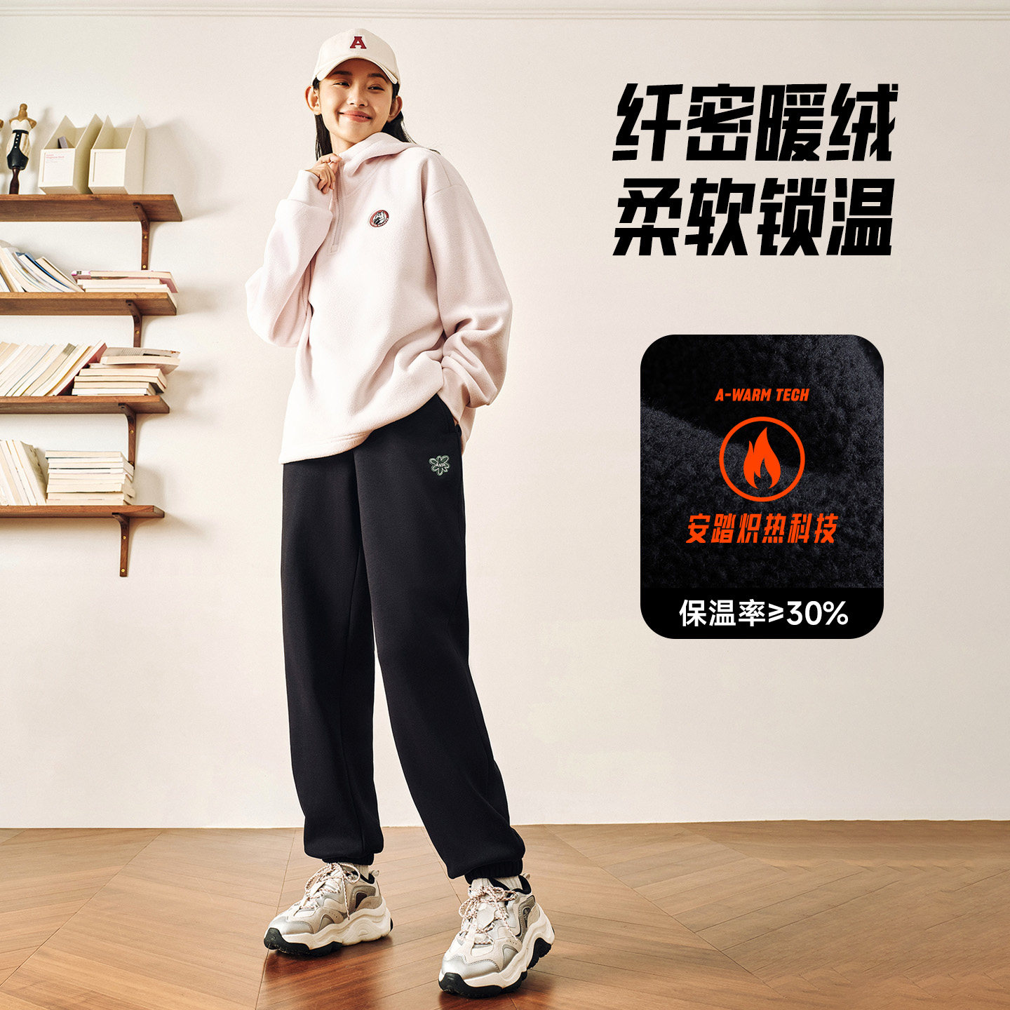 安踏雪鸮卫裤丨休闲束脚裤女冬季新款加绒保暖针织长裤宽松运动裤