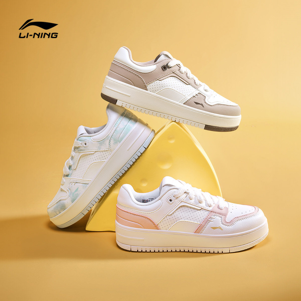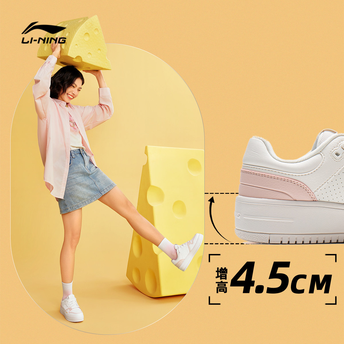 李宁奶酪丨板鞋女秋季小白鞋时尚百搭厚底增高经典休闲鞋运动鞋女