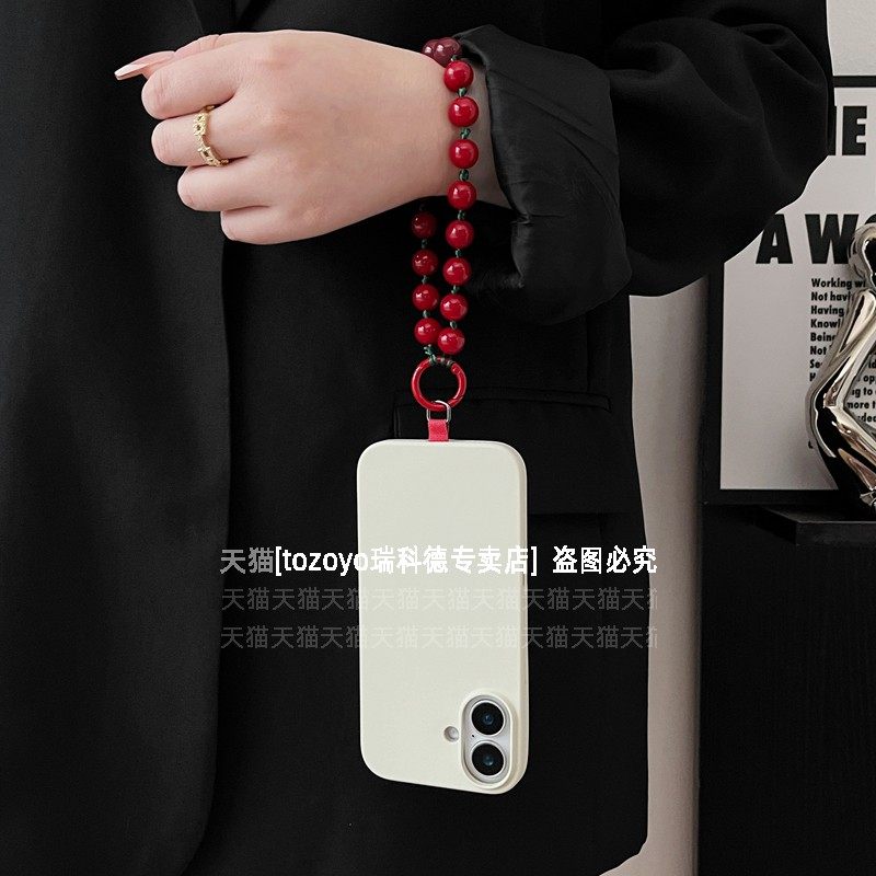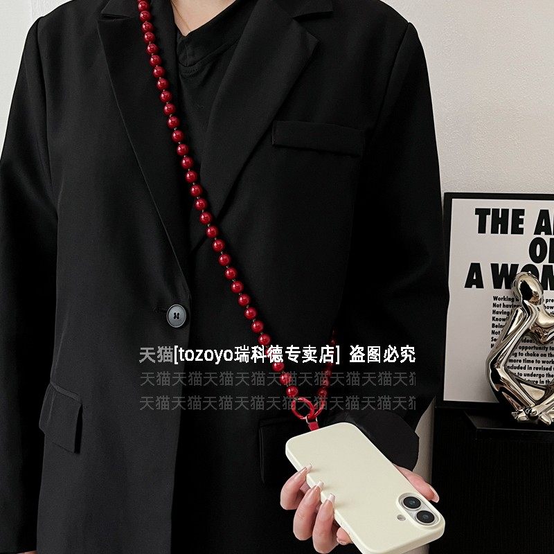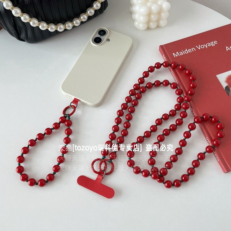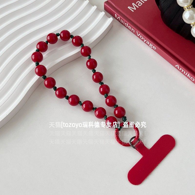新款红色手机链挂绳挂手腕串珠链条斜挎可背挂饰本命年挂链包包钥匙扣万能挂件新款高级结婚手链女腕带夹片壳
