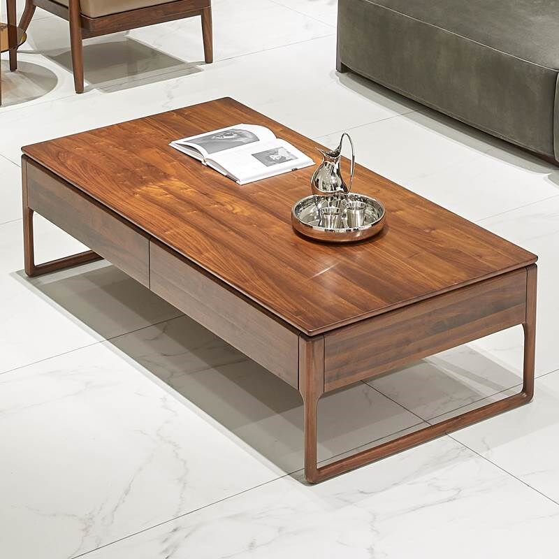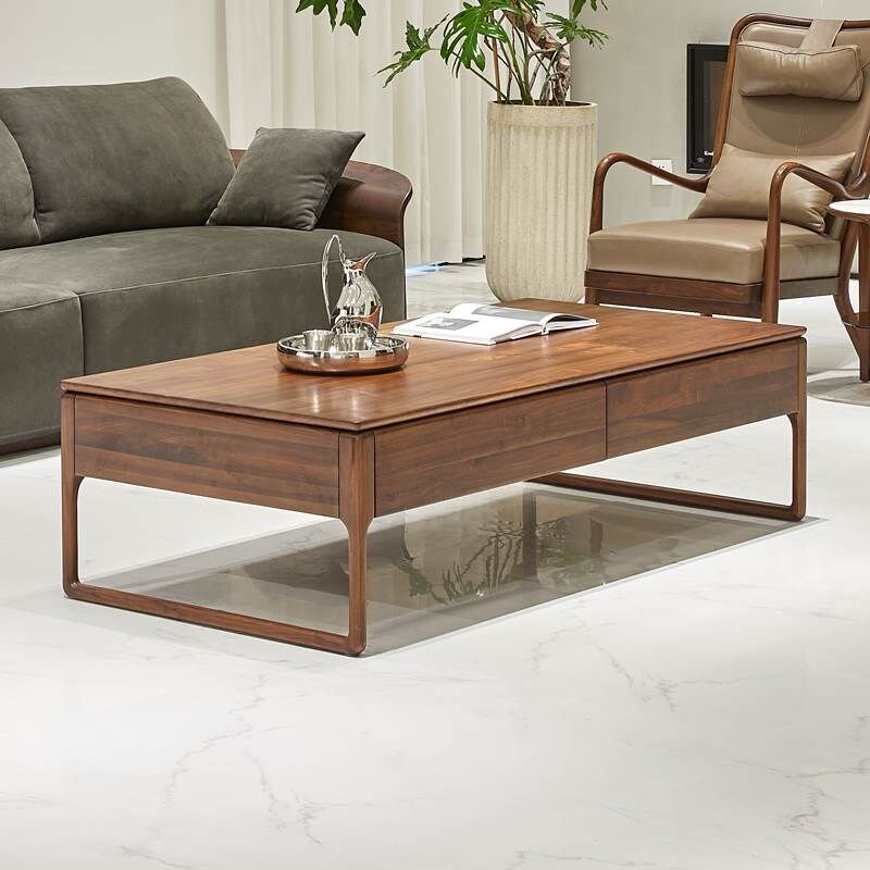 北美黑胡桃木茶几储物家用简约长方形H沙发桌子意式极简实木茶几