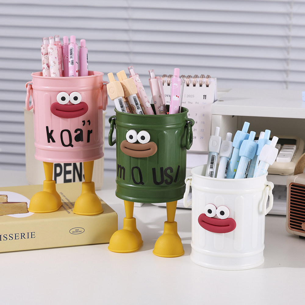 简约卡通大容量办公室高颜值多功能可爱儿童男孩女孩文具创意笔桶轻奢高级感放笔的摆件塑料绿色
