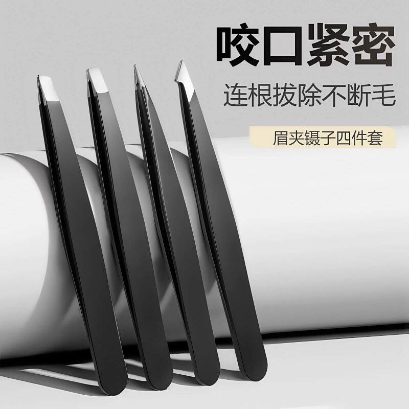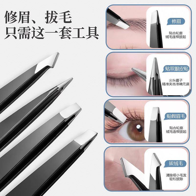 镊子眉毛夹拔毛修眉小钳子不锈钢拔胡子男士女眉假睫毛带镜子套装