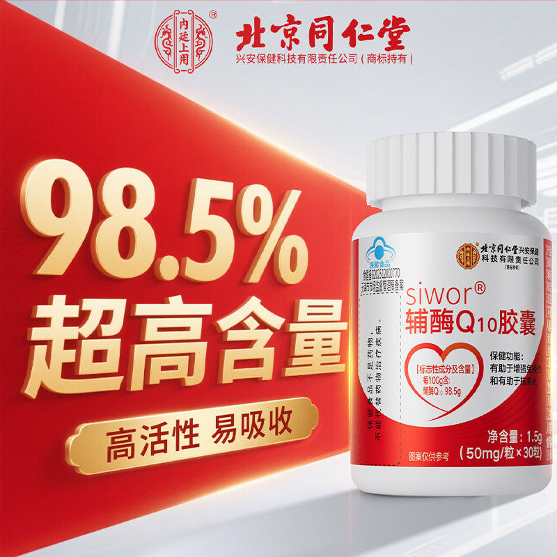 北京同仁堂辅酶q10软胶囊国产心脏保健非进口美国官方旗舰店正品