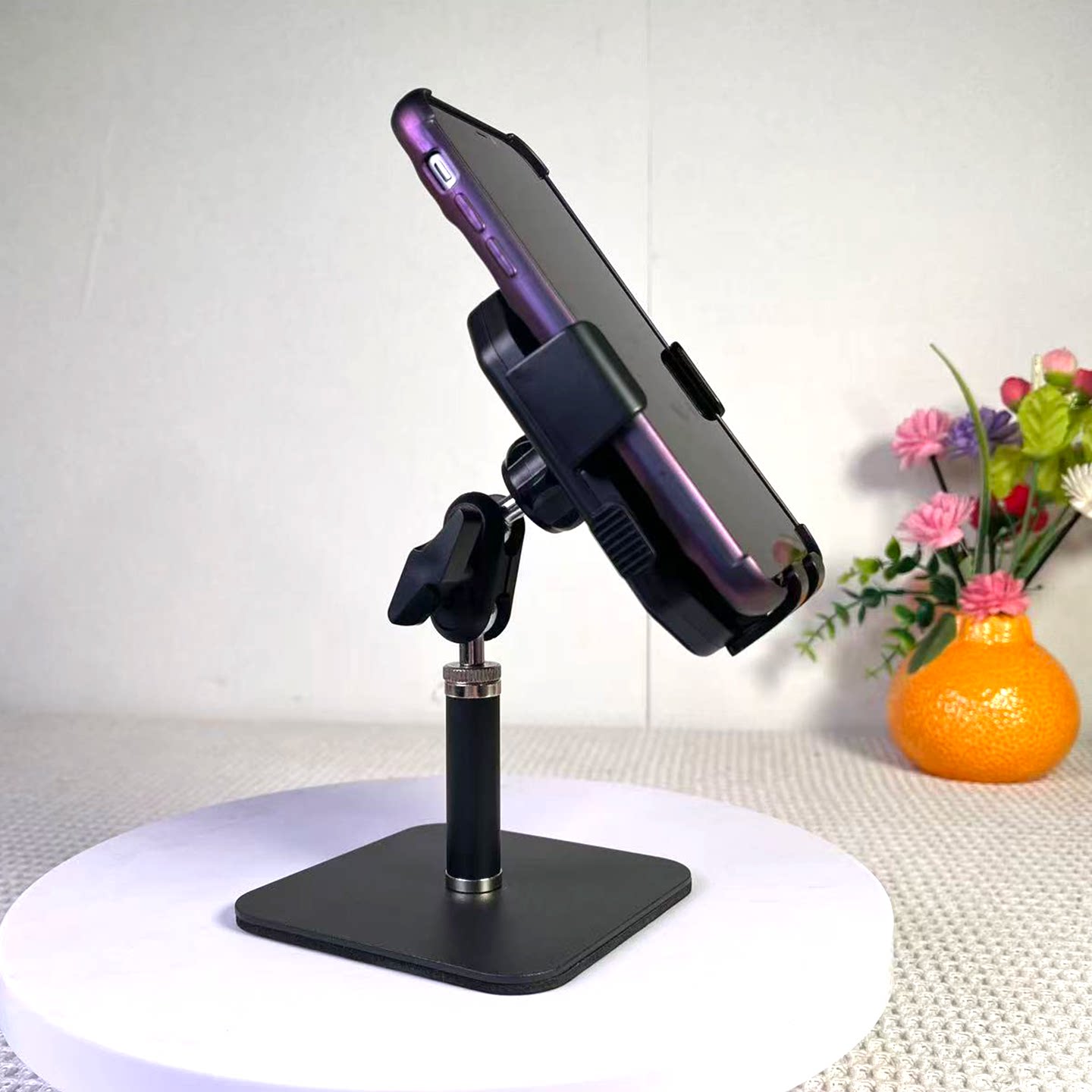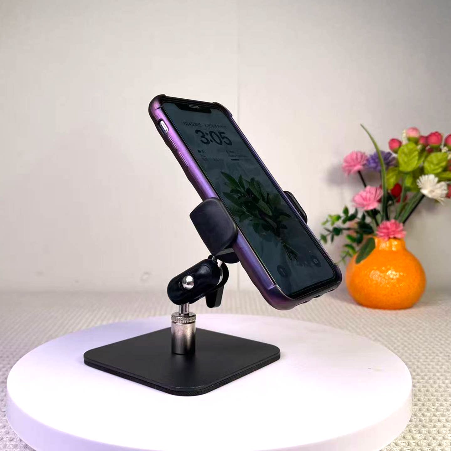 手机支架金属方盘万向旋转调节手机座桌面固定直播拍摄懒人支架矮款手机夹一键解锁单手取放