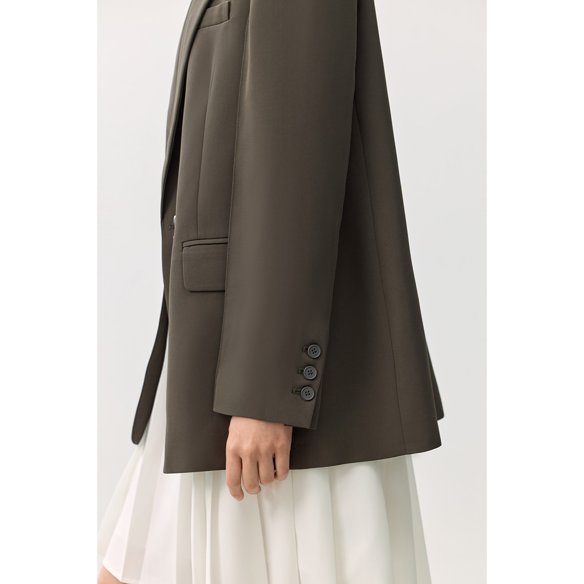 COCOBELLA高智感青果领老钱丝光缎面西装女苔藓绿通勤外套SI7019