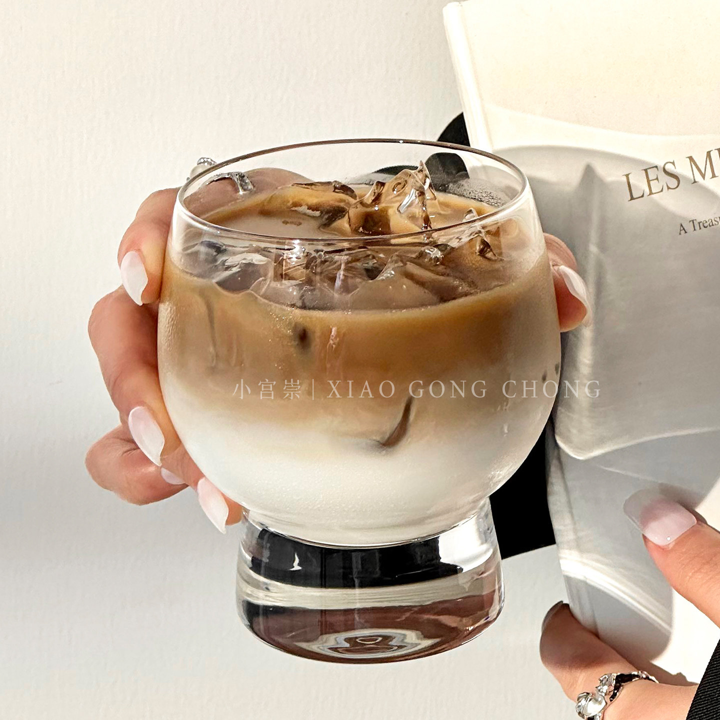 小众复古矮脚收腰玻璃杯ins风美式咖啡杯特调饮品杯冷饮杯果汁杯