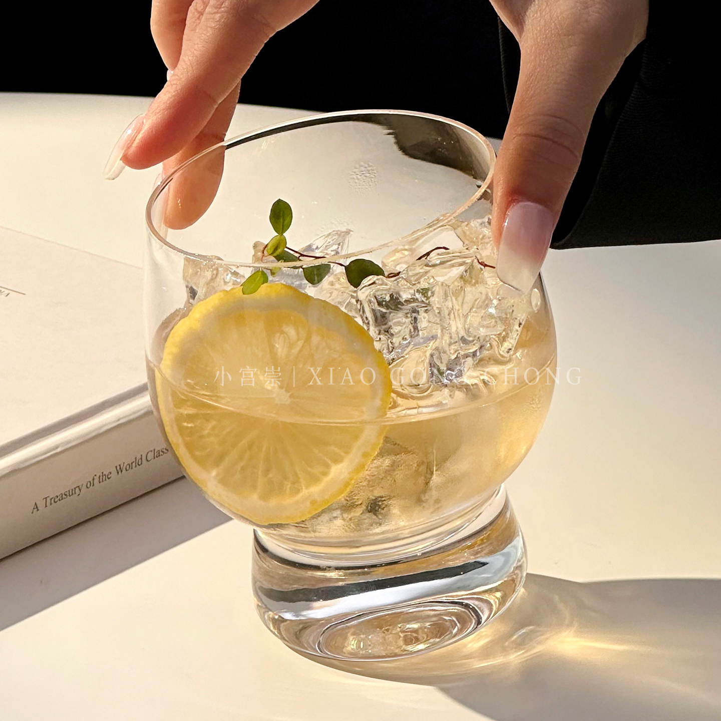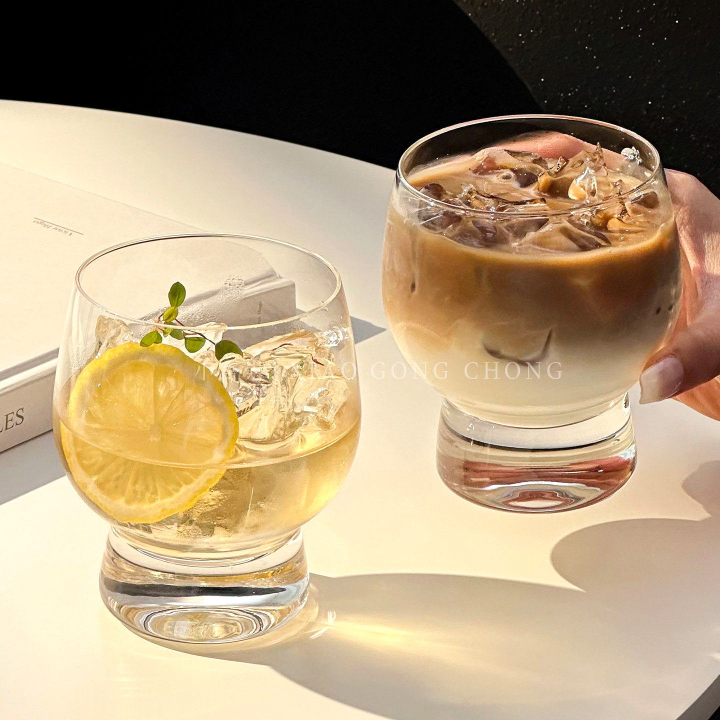 小众创意可爱鼓鼓杯轻奢高级感ins风威士忌酒杯玻璃果汁杯冷饮杯