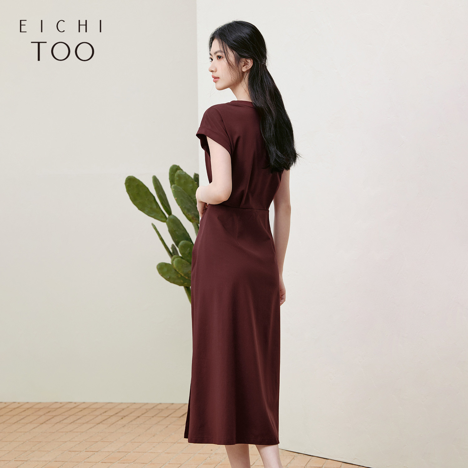 【热销补货】欧时力 褶皱短袖连衣裙女2026春新款收腰显瘦小黑裙