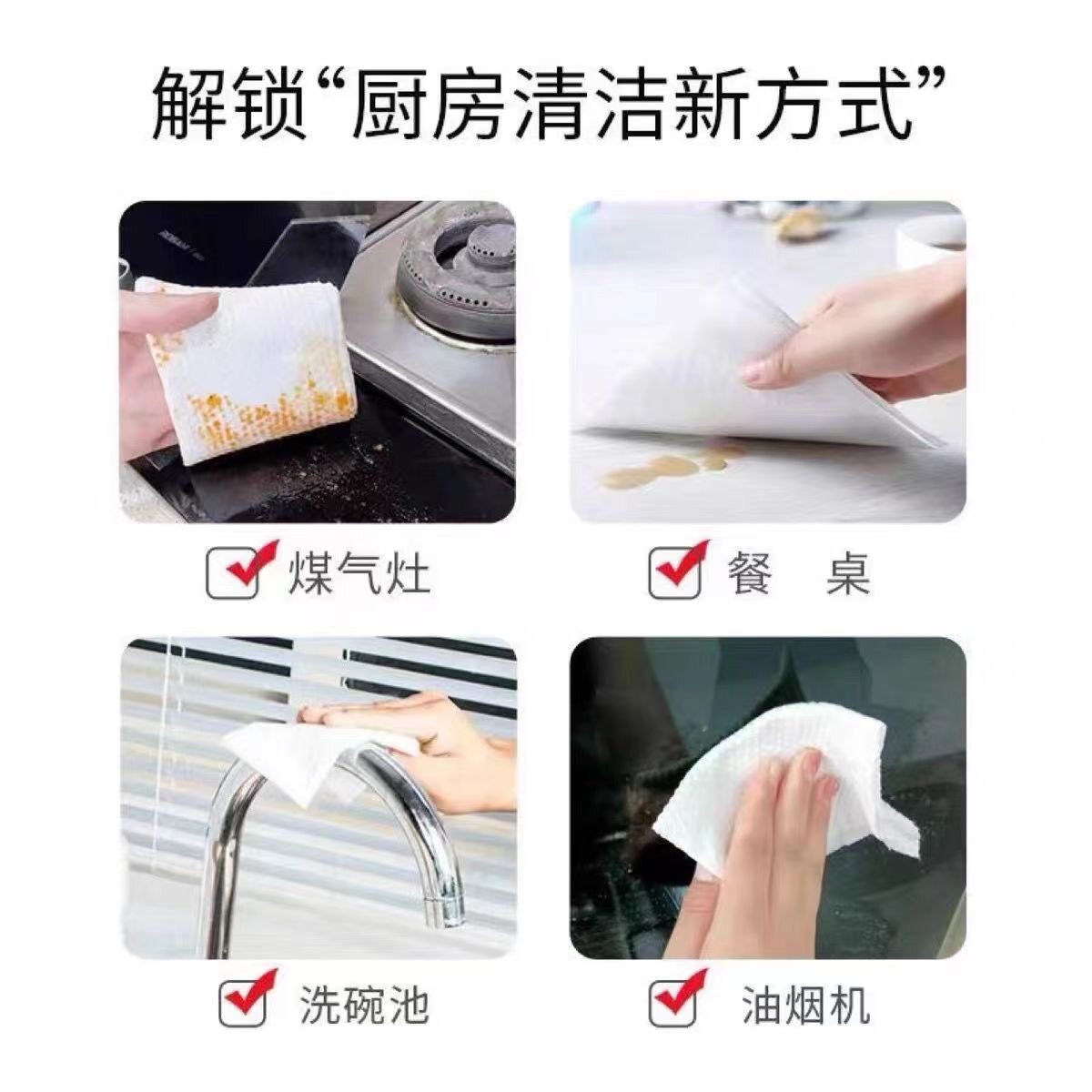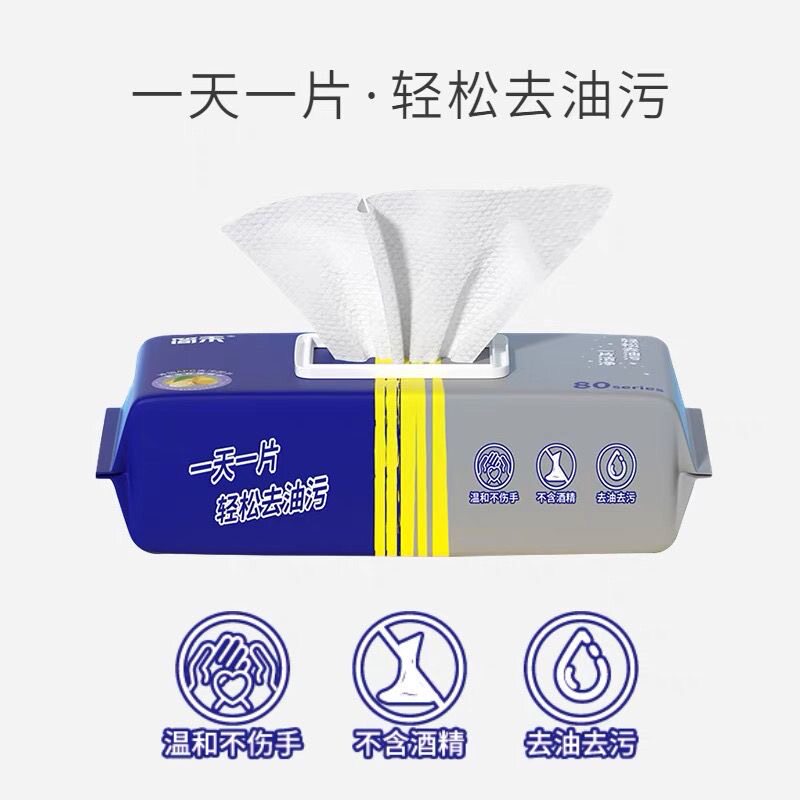 厨房湿巾纸去污去油家用油烟机清洁强力湿纸巾80抽加大抹布大包装