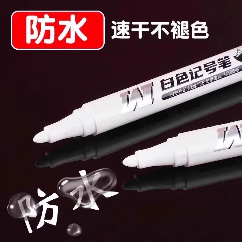新款白色记号笔防水防油不掉色油漆笔木工工业工地专用大头笔记号笔白色笔轮胎涂鸦笔粗笔签到笔签字笔不褪色