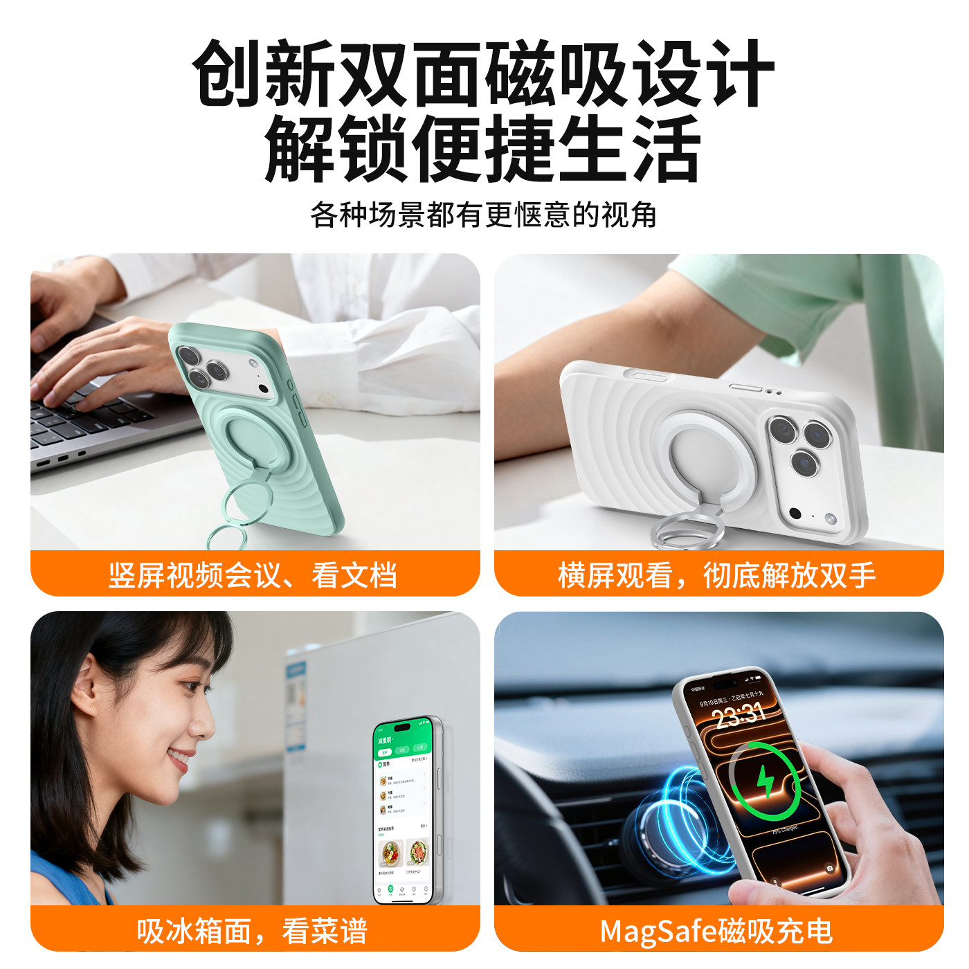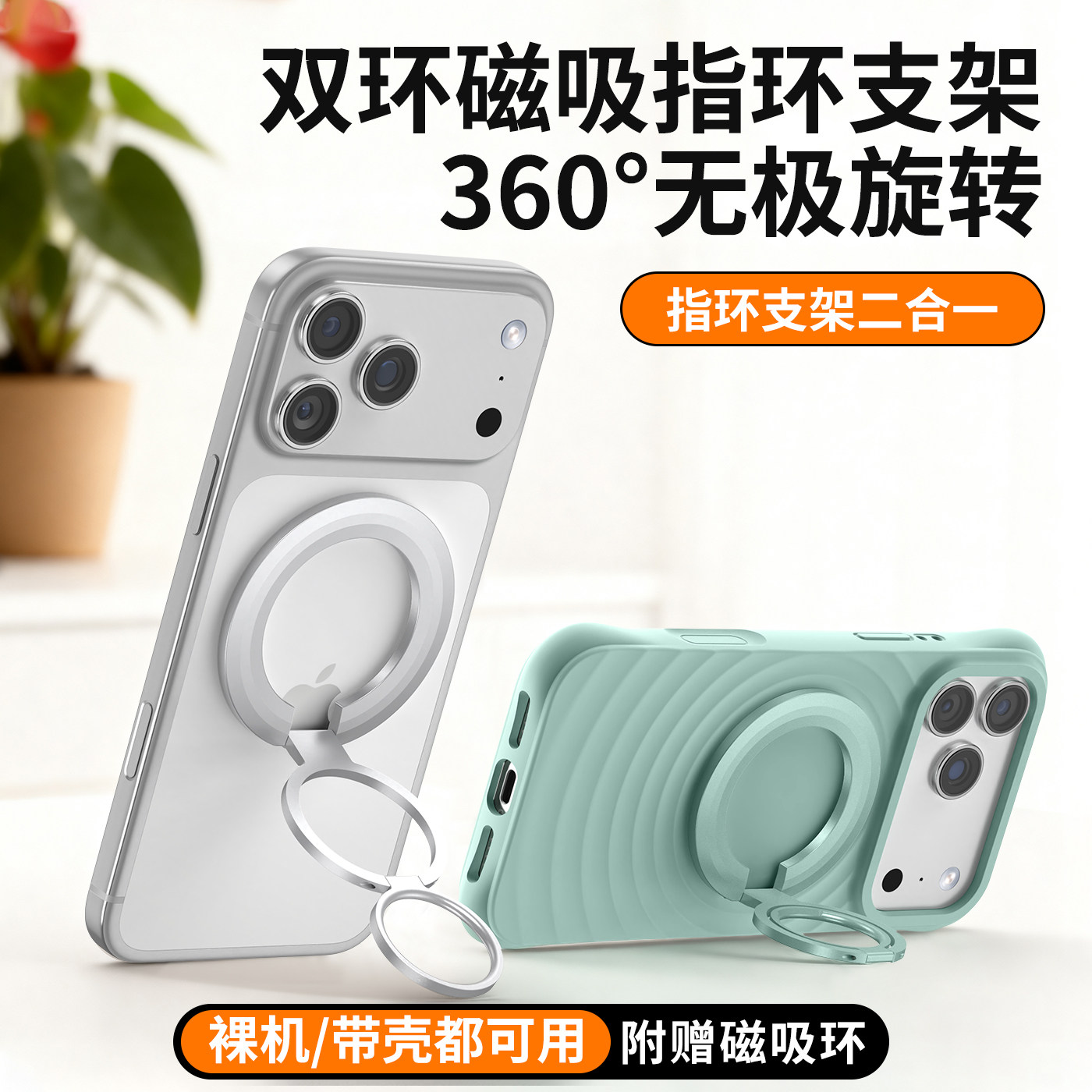 新款手机支架magsafe双面磁吸指环扣强力车载多功能支撑旋转桌面