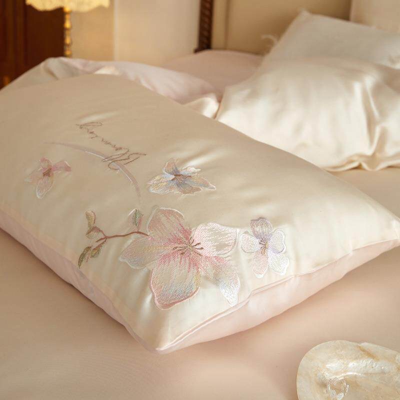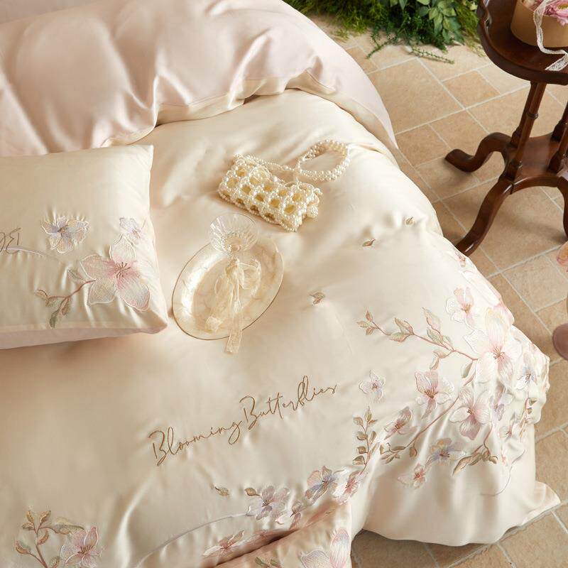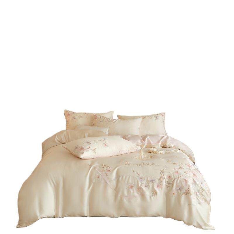 清新刺绣兰精天丝四件套夏季被套裸睡床单丝滑床上用品1.8m套件