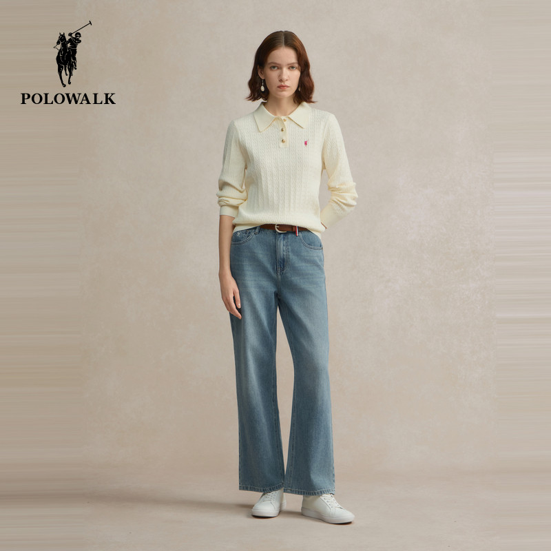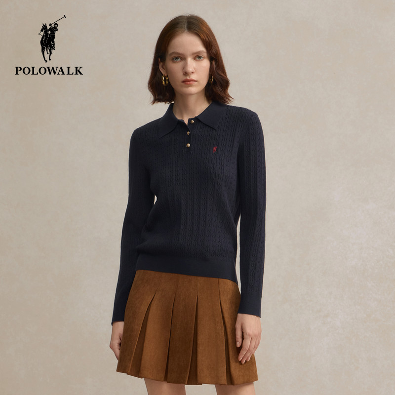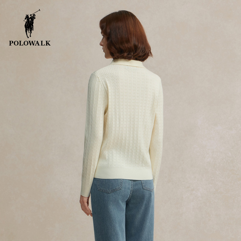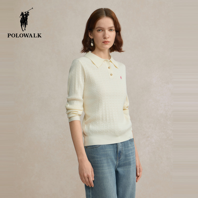 POLOWALK女装2026春季新款女士长袖针织衫通勤百搭polo领针织衫女