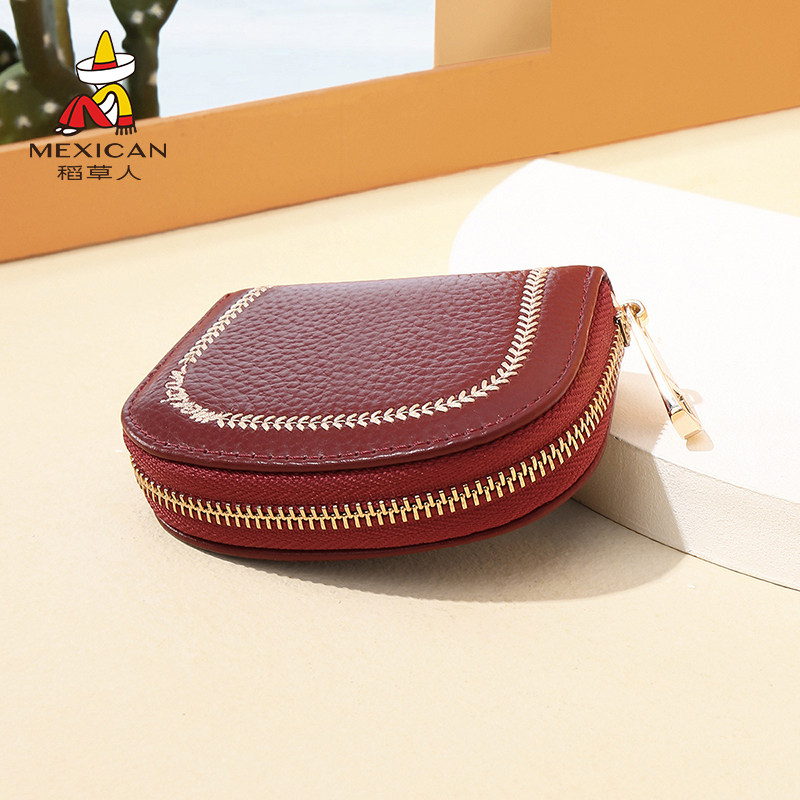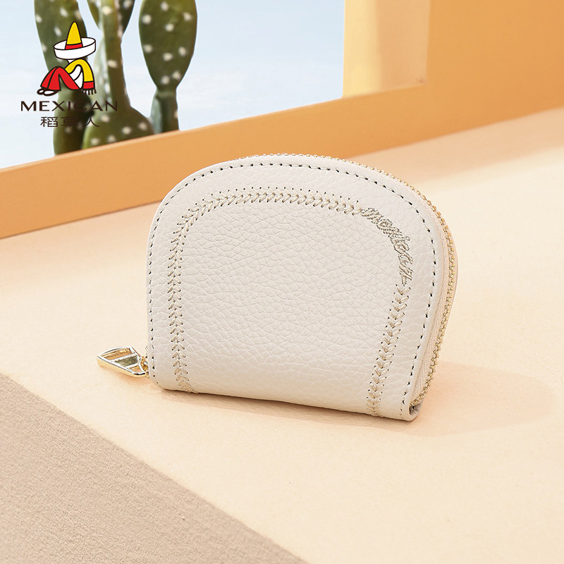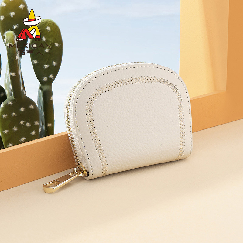 稻草人钱包女2026新款可爱真皮多功能卡包迷你小巧牛皮短款零钱包