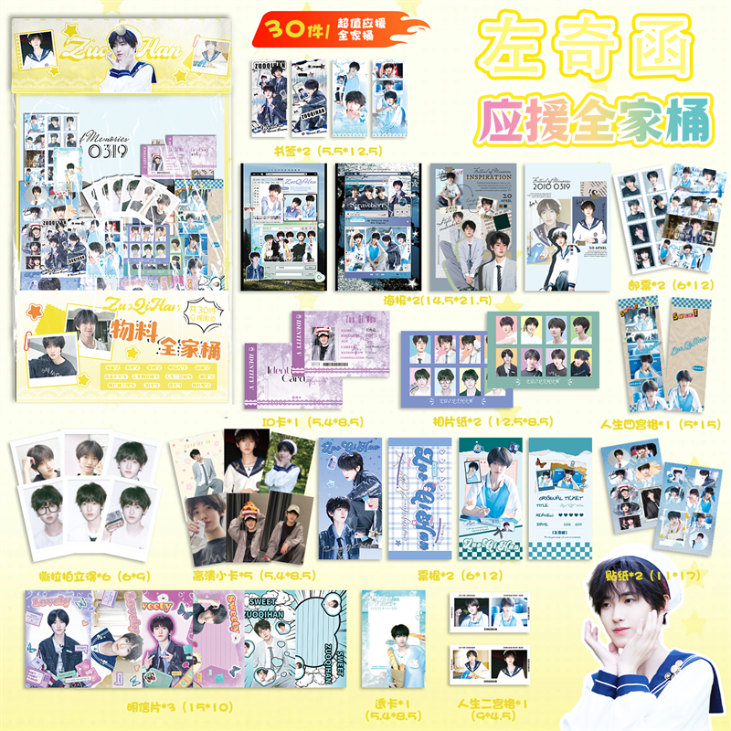 左奇函应援物料全家桶明星周边书签镭射小卡透卡明信片30件大礼包