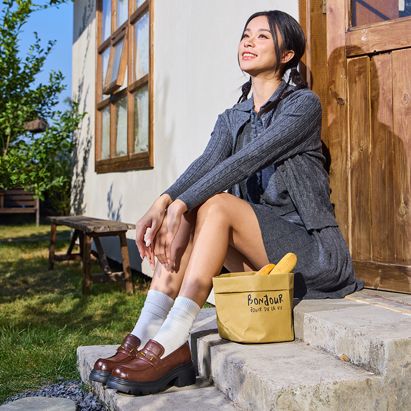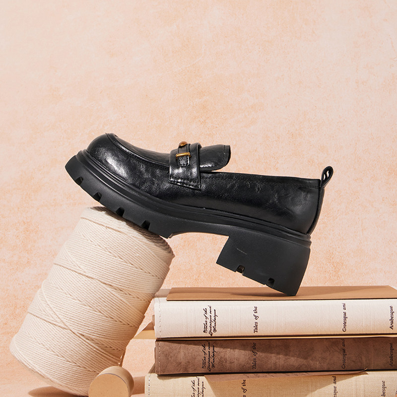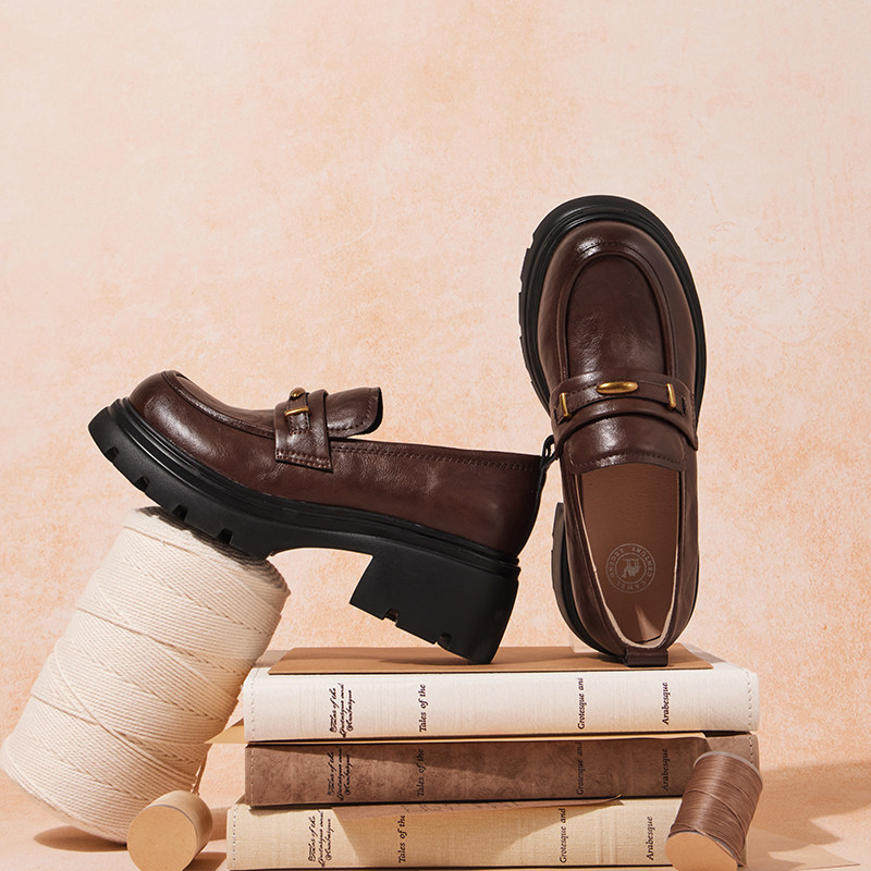 骆驼女鞋2026春季新款百搭复古jk厚底增高小皮鞋休闲单鞋女乐福鞋