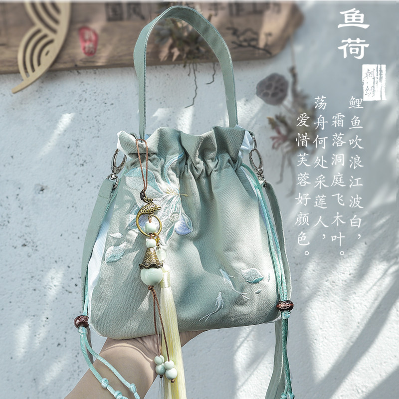 新品斜挎小束口包古风汉服刺绣流苏手提抽绳手机包国风仙女小荷包