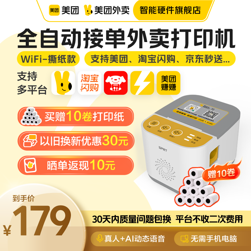 【美团官方】美团外卖打印机自动接单美团打印机京东外卖打单机小票打印机外卖专用wifi票据美团外卖智能硬件