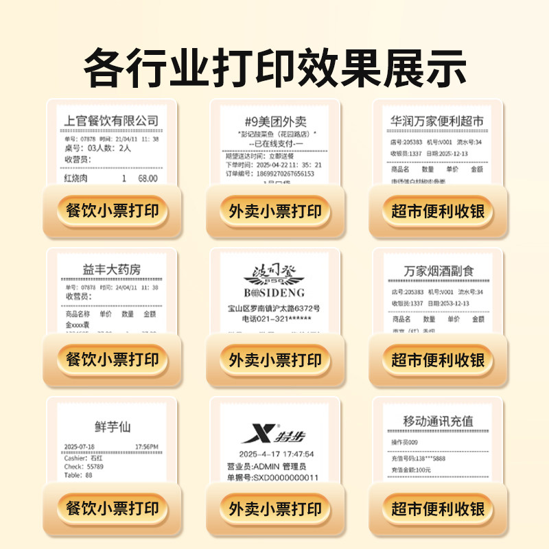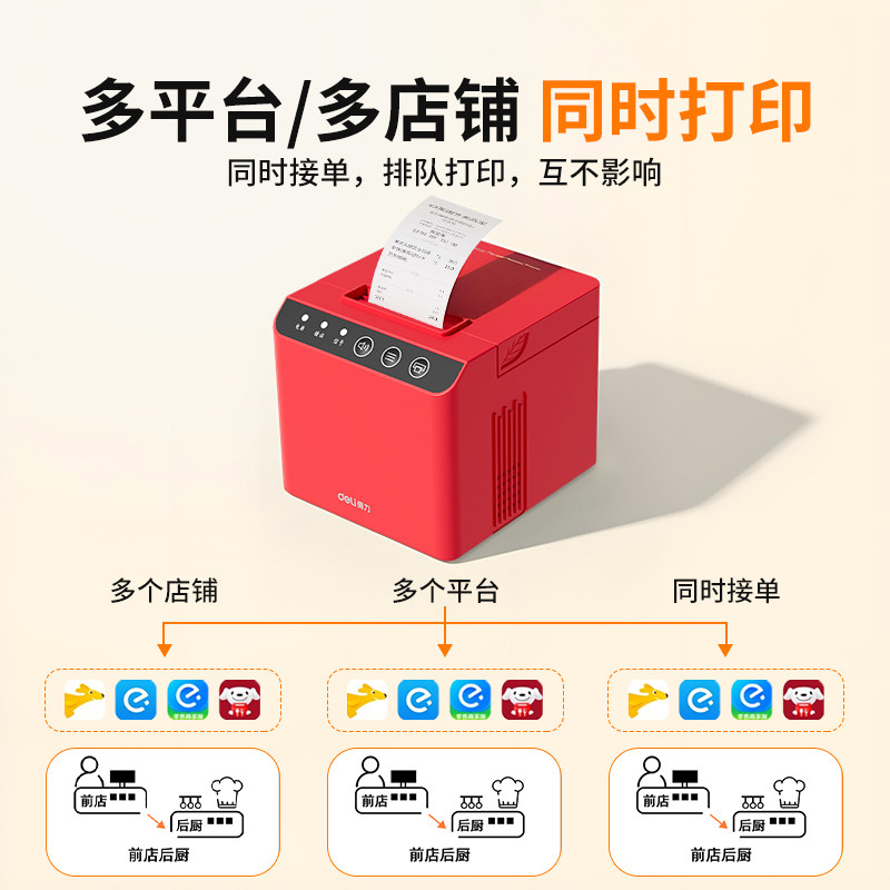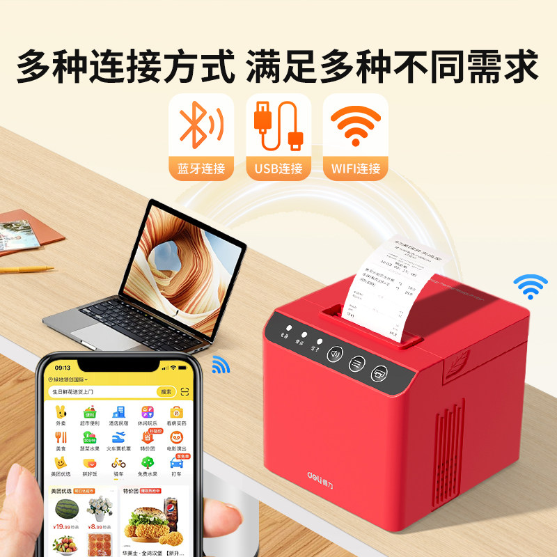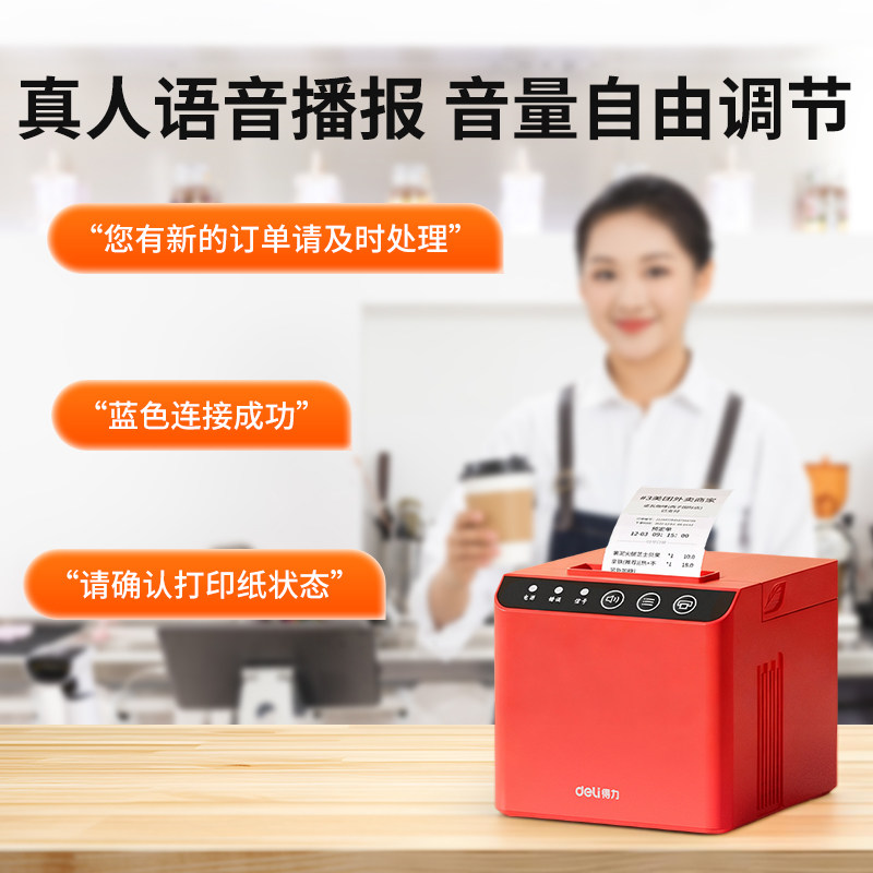 得力外卖打印机热敏票据接单美团饿了么商用语音全自动接单wifi连接蓝牙便携前台后厨厨房餐饮点菜单打单机