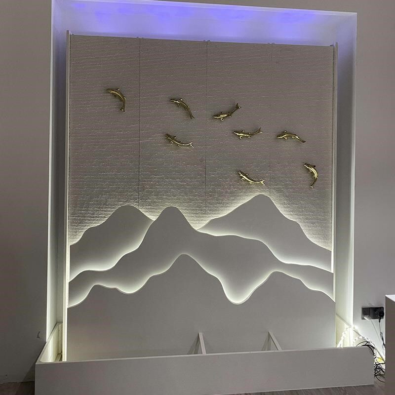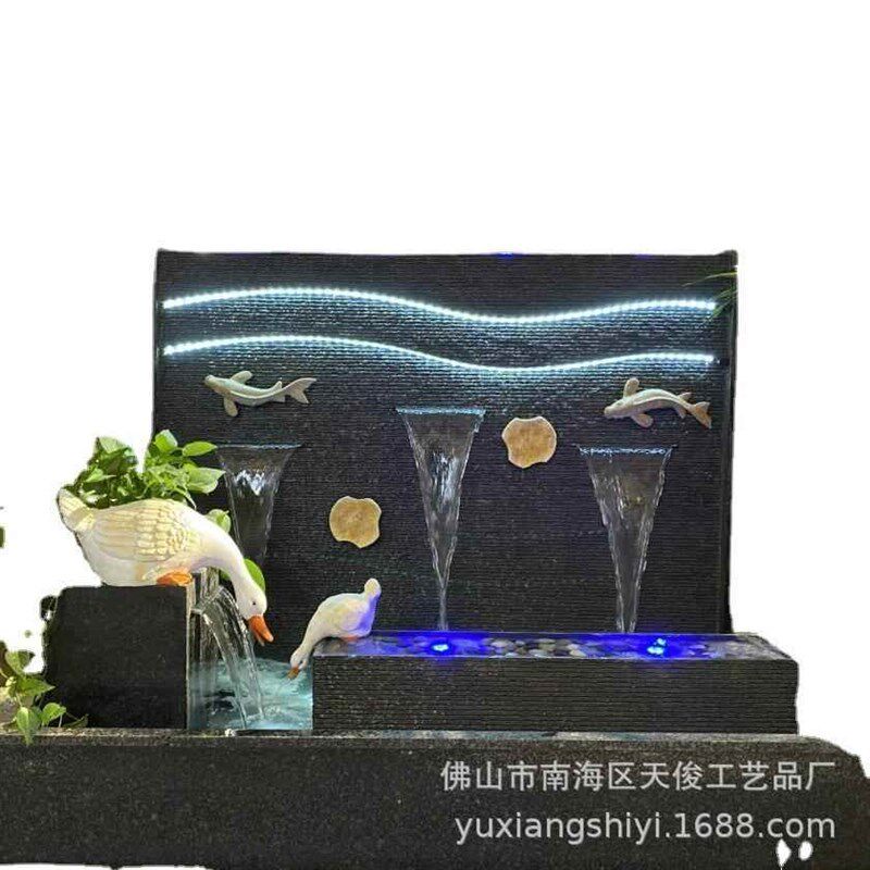 家流水幕墙家厂石材流4水喷厂泉景观别I墅园庭院花水景大型假山鱼